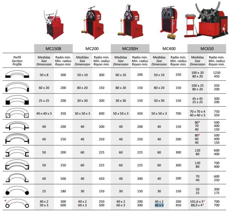 Djelatni donji set valjaka, neovisno, snažna čelična konstrukcija i visoka snaga prijenosa omogućuju savijanje malih radijusa (40x2 pri r.min 200, 60x3 pri r.min 450).
