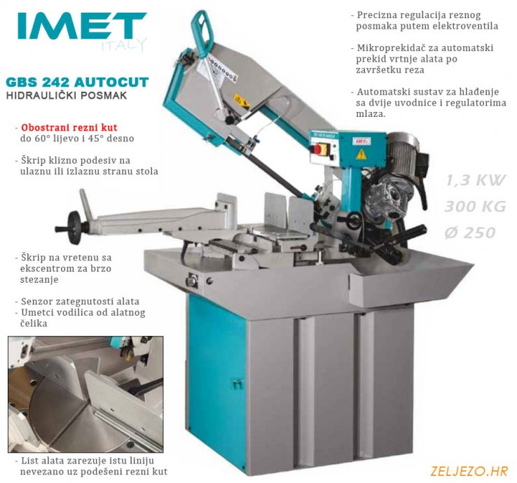 Stroj za rezanje metala, tračna pila za metal Imet GBS 242 Autocut - profesionalni stroj za rezanje cijevi, profila, flahova i šipki standardnih konstrukcijskih čelika.