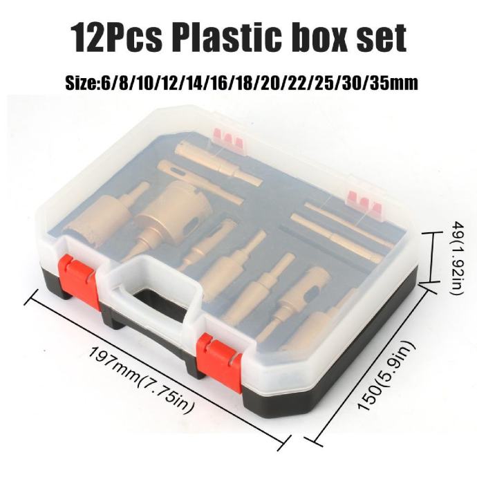 【Tehnologija za lemljenje, čvrsto i oštro】Komplet pila za rupe sa suhom lemljenom dijamantnom jezgrom od 12 komada izrađen je od dijamantnog integralnog čelika, koji je čvrst i izdržljiv. Na površini je usvojen postupak visoko otpornog na koroziju lemljenja, a zadebljani dijamantni premaz na vrhu pruža izvrsnu snagu rezanja za visoko precizno i glatko rezanje, a bušenje je stabilno i brzo.
