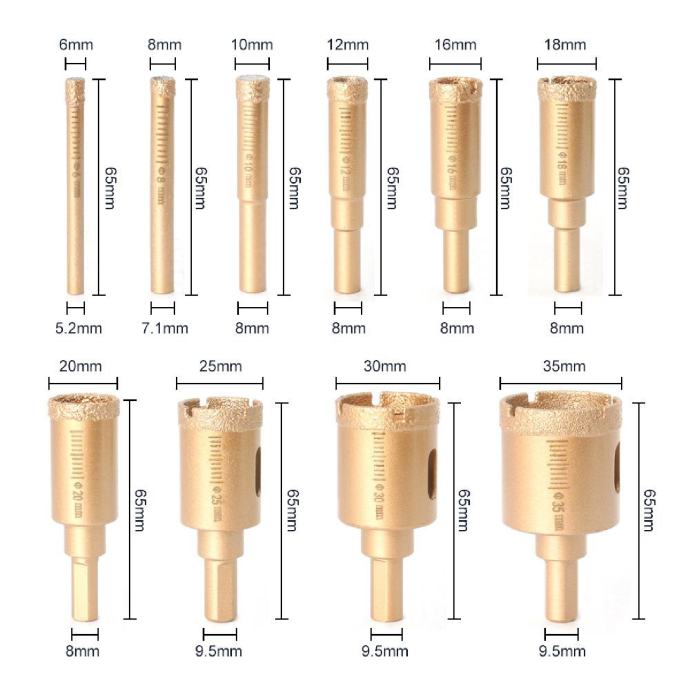 【Suhi i mokri dvonamjenski dizajn】Sve lemljene pile za rupe tretirane su posebnim postupkom otpornim na visoke temperature. Čak i bez vode kao maziva, još uvijek mogu izdržati ogromnu toplinu koju stvara pila za rupe kada se okreće velikom brzinom. Naravno, vodu možete koristiti i kao dodatno rashladno sredstvo kako biste produžili radni vijek pile za rupe.