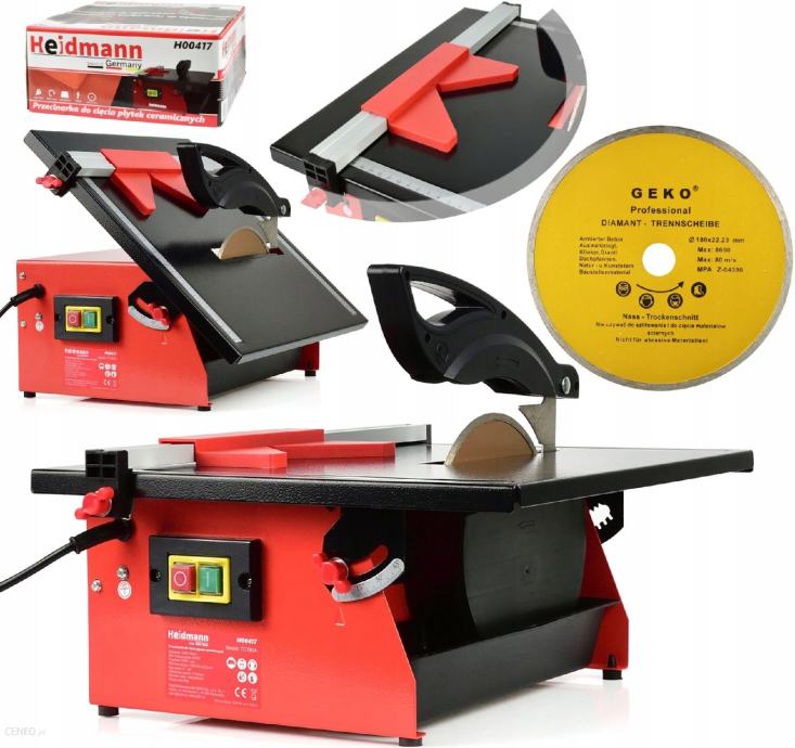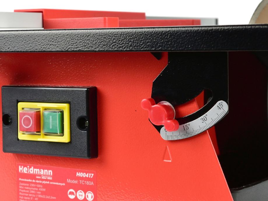 Rezač Heidmann opremljen je dijamantnim diskom promjera 180 mm , koji osigurava visoku preciznost rezanja. Zahvaljujući brzini vrtnje od 2990 okretaja u minuti, naš uređaj može rezati i najtvrđe materijale. Bez obzira na vrstu keramičkih pločica ili drugih materijala, naš rezač se s njima može nositi bez problema.