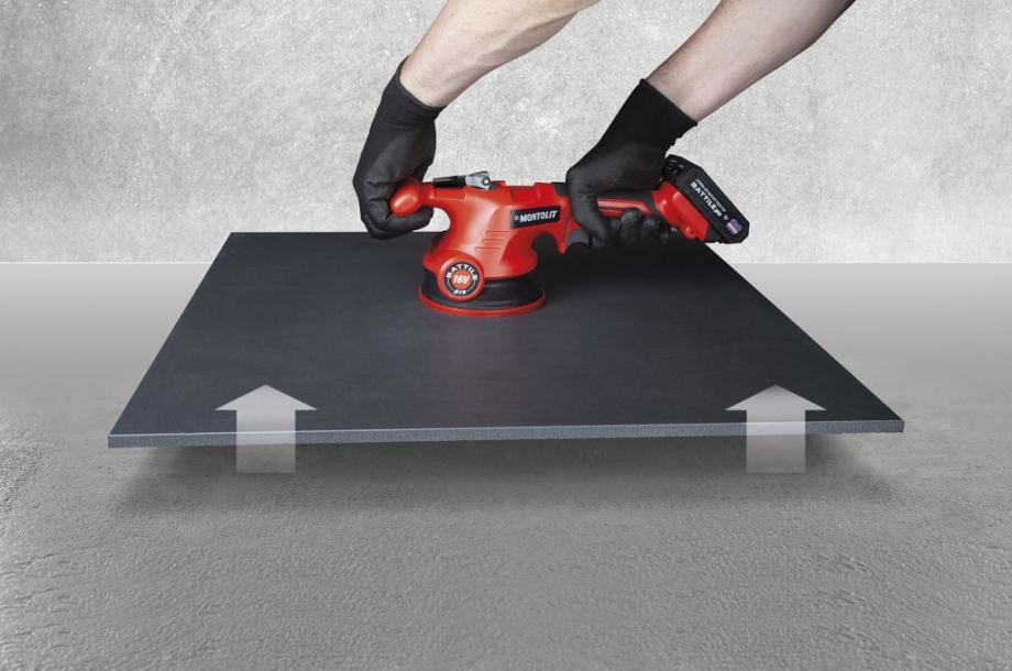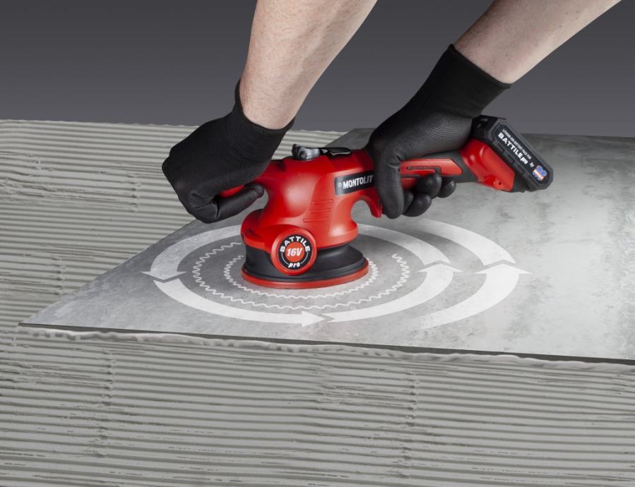 zahvaljujući vibracijama zamjenjuje ručni rad i pomaže u izbjegavanju problema zbog nepravilne raspodjele ljepila ispod pločica i velikih ploča