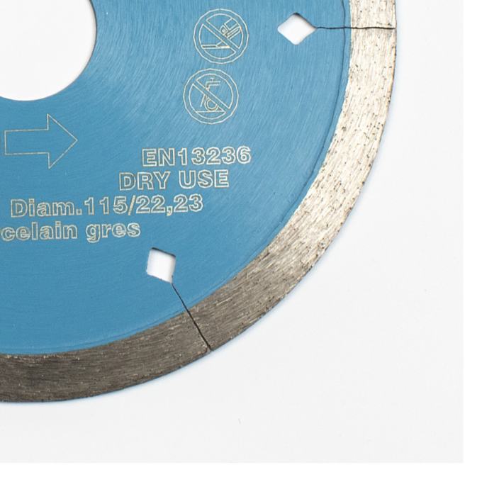 Mokro i suho korištenje Profesionalna dijamantna rezna ploča za rezanje svih vrsta keramike. Debljina od 1,1mm omogućuje precizno i dugotrajno rezanje keramike do 15mm debljine. Promjer 115mm – za kutne brusilice.