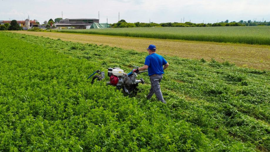 - Motorna kosilica s povišenom strukturom osovine i bočnom pogonskom jedinicom za košnju krme.
