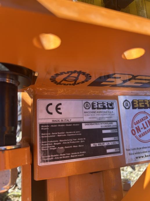 BERTI ECOROW/D - HIDRAULIČKI PODESIV KULTIVATOR ZA UNIŠTAVANJE KOROVA UNUTAR REDOVA - NOVO