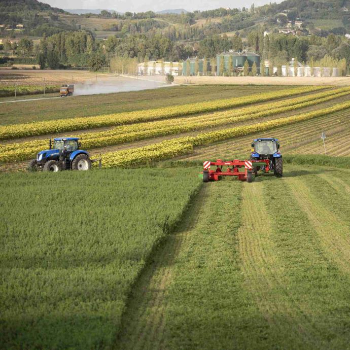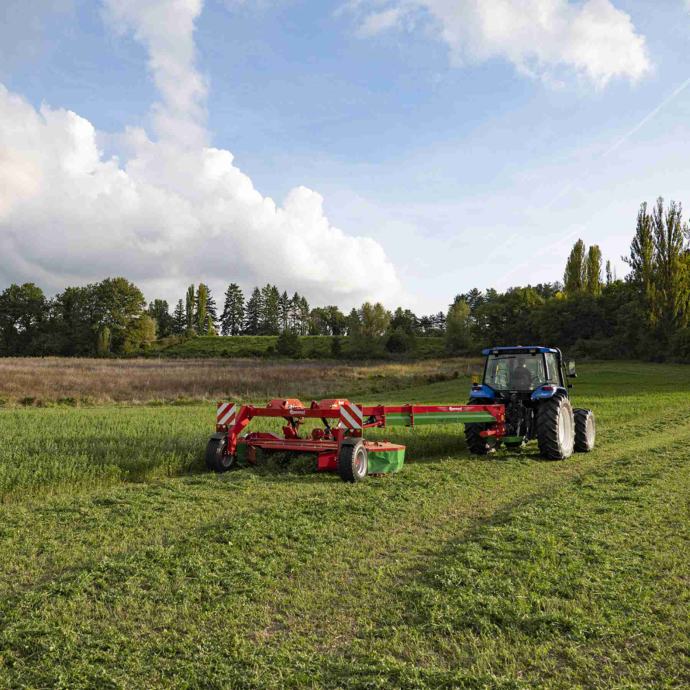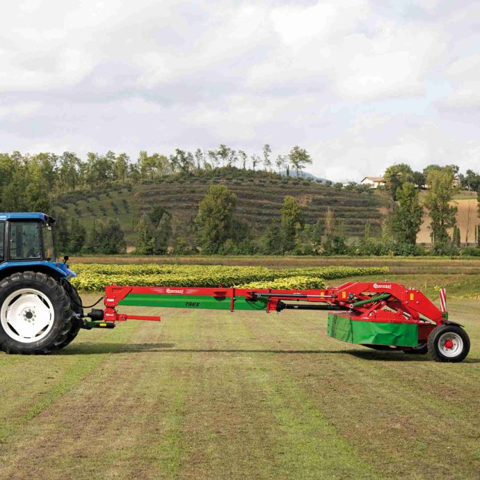 Vučena kosilica TREX CP sa središnjom i zakretnom poteznicom omogućuje vam rad i s desne i s lijeve strane traktora bez gubljenja vremena pri obradi uvratina.