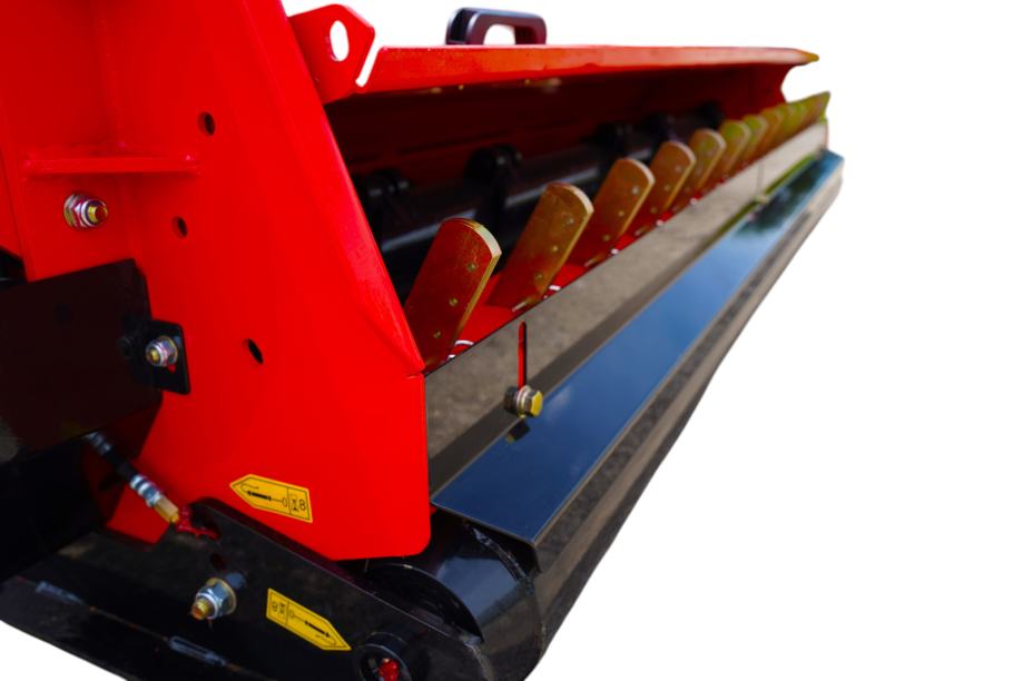 Malčer je opremljen s 26 čekića i četiri remena, što osigurava učinkovito malčiranje čak i gušće vegetacije. Sigurnosna spojka u reduktoru štiti prijenos snage, a kardansko vratilo omogućuje pouzdan pogon rotora. Priključivanje na traktor brzo je i jednostavno preko trotočkovnog sustava.