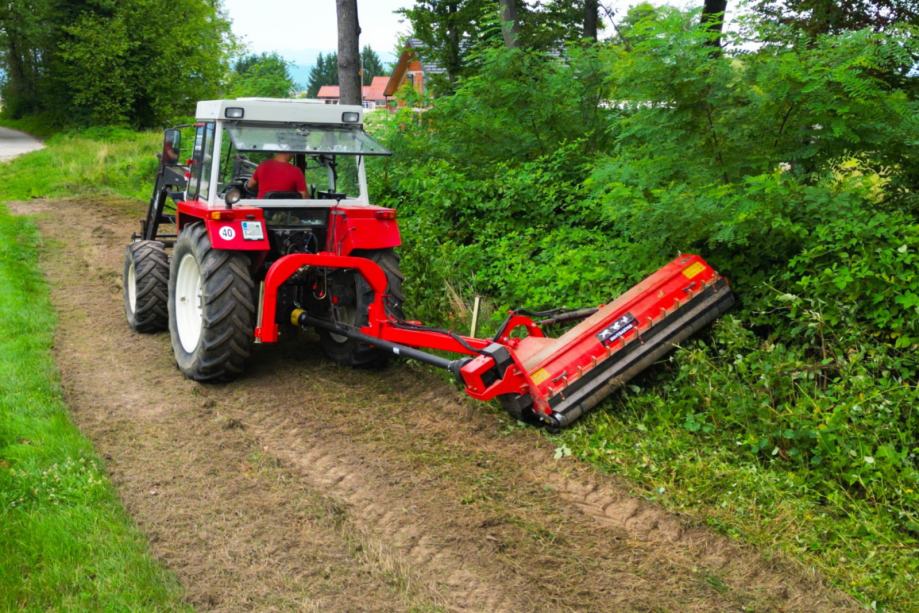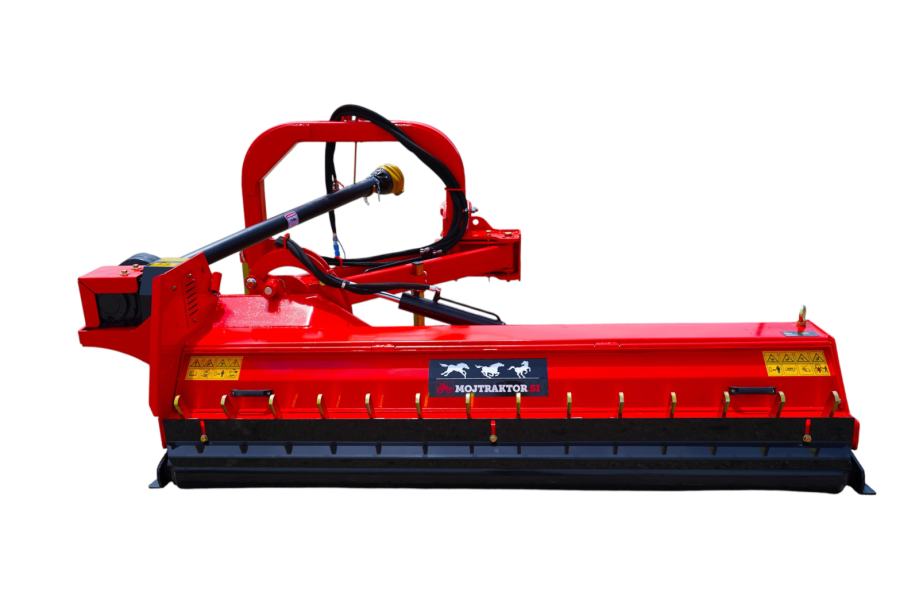 Malčer je opremljen s 32 čekića koji osiguravaju precizno i ravnomjerno malčiranje čak i guste vegetacije. Stražnja vrata omogućuju bolji protok materijala i lakše čišćenje nakon rada, dok čvrsta konstrukcija i težina od 710 kg jamče stabilan rad i u zahtjevnim uvjetima. Preporučena snaga traktora je između 90 i 130 KS, što omogućuje pouzdan i učinkovit rad s širokim rasponom traktorskih modela.