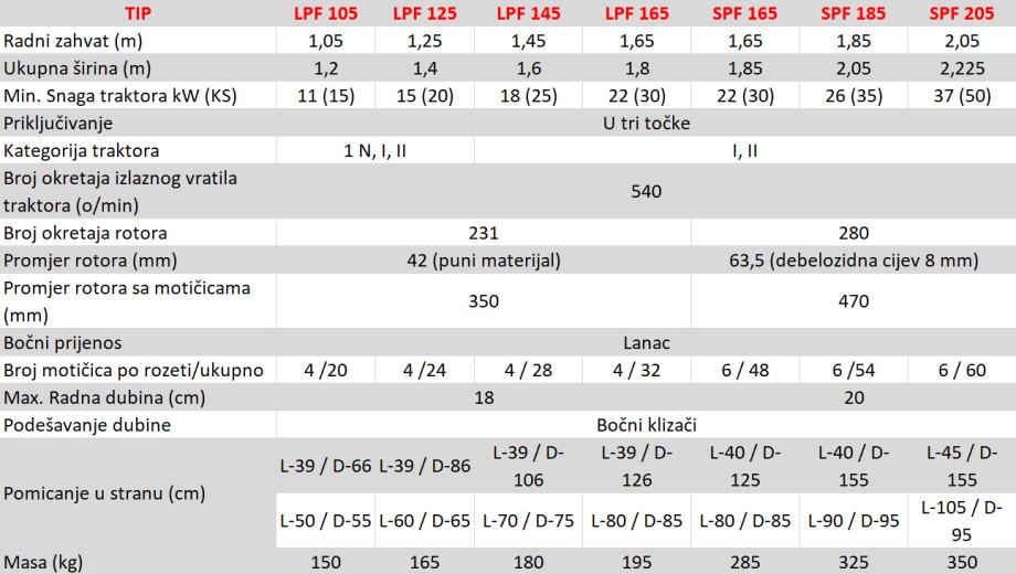 Tehničke karakteristike svih freza možete pogledati na slici u galeriji.