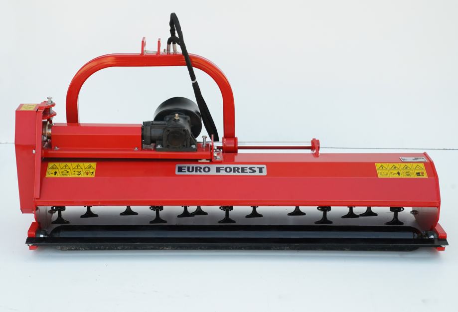 Mulčer s pomakom EuroForest MCP140 lagan je i pouzdan priključak za učinkovito malčiranje trave i nižeg grmlja na većim površinama. S radnom širinom od 140 cm omogućuje brzo održavanje travnjaka, pašnjaka i voćnjaka, dok čekići osiguravaju ravnomjerno usitnjavanje vegetacije. Hidrauličko pomicanje omogućuje pomak malčera lijevo ili desno, što olakšava rad uz rubove, drveće, ograde i druge prepreke. Podesivi stražnji valjak i klizači omogućuju prilagodbu visine malčiranja, čime se priključak lako prilagođava različitim terenima. Kardanska osovina traktora prenosi snagu na rotirajuću osovinu s noževima, dok zupčasti prijenos u sredini malčera osigurava stalno, pouzdano i dugotrajno djelovanje čak i pri redovitoj upotrebi. Malčiranje tako postaje brže, lakše i učinkovitije.