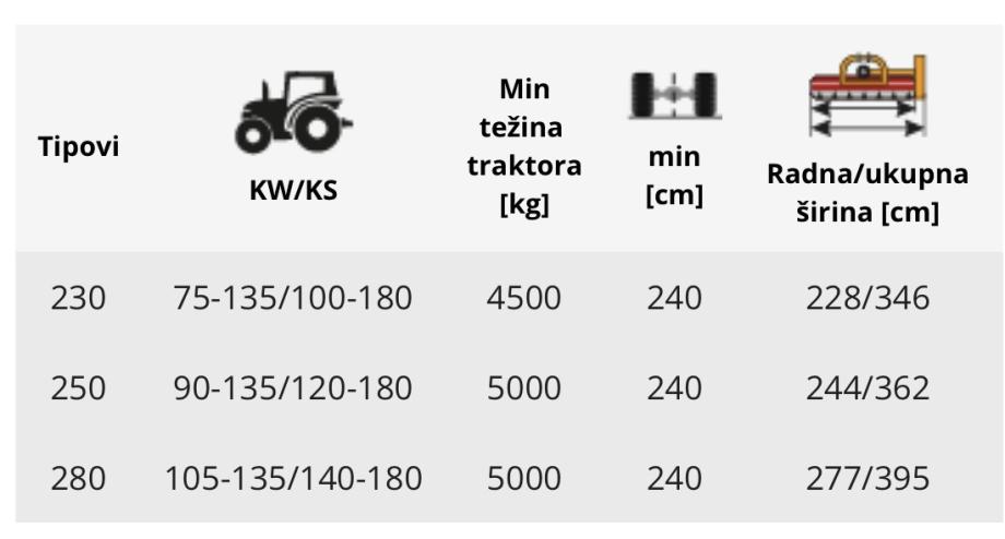 Cijene ovise o opremi radnog stroja ili priključka.