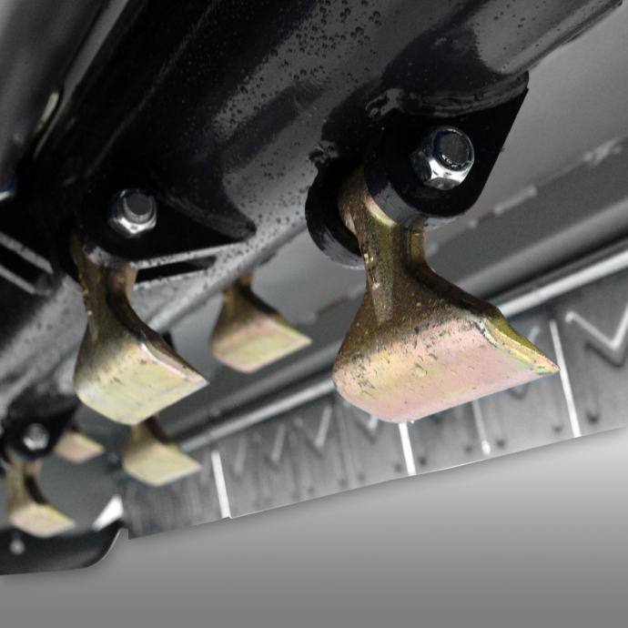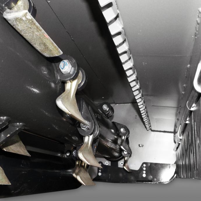 Posebno otvrdnuti čekići od 1,2 kg, koji su raspoređeni na dvostrukoj spiralnoj pogonskoj osovini, režu su isječke na najmanju veličinu. Čak i vrlo visoka trava, grmovi ili slama nisu problem za ovu kosilicu!