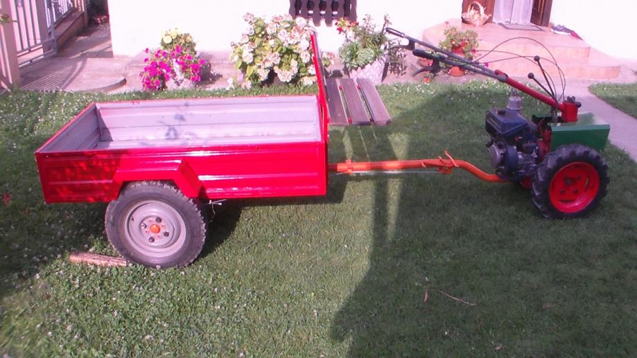 Prodajem motokultivator Gorenje muta 8ks komplet. Komplet se sastoji od motokultivatora, freze,kose sa grebenom,manjim kotačima 4.00x8 i prikolice.Motor LA-300 8ks, generalno obnovljen, promjenjeno ulje u motoru i getribi, promjenjene sve sajle i kočnice na motokultivatoru. Freza širine 70cm savršeno ispravna.Kosa širine 130cm sa grebenom te 2 rezna noža i manjim kotačima 4.00x8 isključivo za košnju. Prikolica orginal sa produženim sjedištem i naslonom, novim gumama i kočnicama, savršeno ispravna. Sve navedeno, bez dodatnog ulaganja, spremno za novog vlasnika.