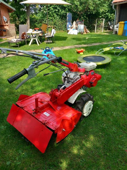 Ima 3 radne i 3 transportne brzine + rikverc. U prosjeku radila 2,5 sati godišnje kod pripreme vrta. U kompletu je vučna freza širine 70 cm, 2 transportna kotača od 12 cola i crtalo. Moguća rotacija upravljača za 180 stupnjeva kod korištenja kosilice ili čistača snijega.