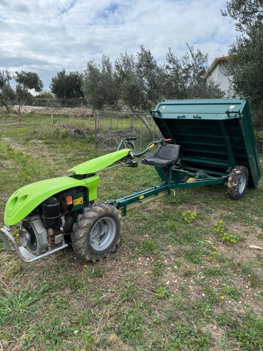 Prodajem motokultivator Labin Progres Special Green, pouzdan stroj za obradu tla. Ovaj motokultivator je robustan i snažan, pogodan za različite poljoprivredne radove poput oranja, kultivacije i pripreme zemljišta. Paljenje na ključ, kardanska prikolica, plugovi za sadnju i vađenje, metalni kotači, freze… kompletna oprema.
