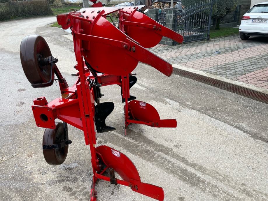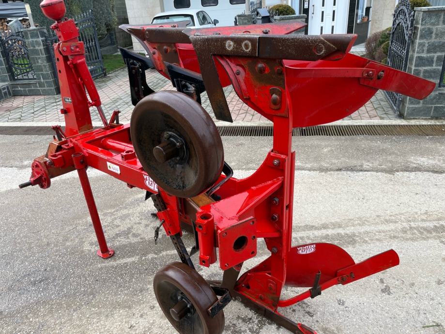Plug dvobrazni Ventzki 12 cola, predpluznjaci,cistaci brazde i kopirni kotač. Plug je u odlicnom stanju, svi elementi originalni, jako malo radio. Visina 65 razmak 85 sir 30.