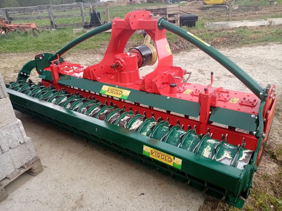 Prodajem roto branu, drljače Vigolo 300SP širina 3 metra.Prvi vlasnik, 2016godina. Brane u odličnom stanju puni pakir valjak, orginal noževi prva ugradnja ništa farbano, sve u tvorničkom stanju.Zaštita od kamena ,12 rotora.,kardan ide uz brane.Brane izrotirale 60 hektara.098640171mob.