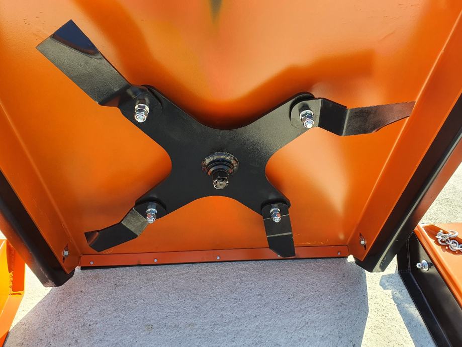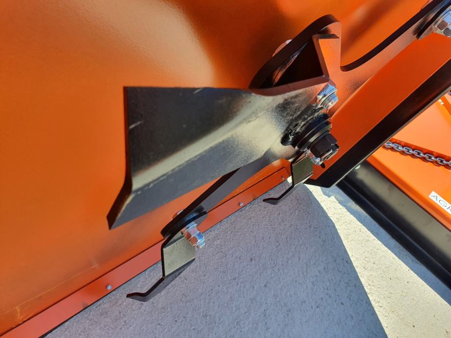Svi malčeri su naše proizvodnje (sve osim reduktora), te su kvalitetno i masivno izrađeni, sa pomakom u lijevu i desnu stranu (bočni posmak). Svi dijelovi korišteni za izradu malčera (čelik, reduktor, vijci, lanac, guma) su novi. Kutni reduktor (getriba ) je talijanskog proizvođača, konstrukcijski namijenjen isključivo za roto malčer, što je vrlo bitno jer je sve dimenzionirano tako da preuzme sve sile koje djeluju na njega , osigurava jednostavnu montažu i demontažu nosača noževa, te osigurava siguran način rada. Navedeni reduktor omjera je 1:1.92 što znači da broj okretaja na kardanu traktora multiplicira 92 %, odnosno ako npr. imate 540 okretaja na traktoru na malčeru če biti 1036 okretaja, što u kombinaciji sa 4 leteća noža ili lanca daje odlične rezultate u radu. Nosač noževa je CNC laserskim rezanjem izrezan iz jednog komada čelika (iz jedne ploče) tako da je točnost reza i rupa ispod pola milimetra što je izuzetno bitno za balans noževa te miran i siguran rad. S obzirom da veliki broj malčera koji se prodaju na ovom ili drugim oglasnicima imaju nosač noževa zavaren iz više komada želim Vam skrenuti pažnju na taj detalj. Kada je nosač noževa varen iz više komada njegova geometrija je daleko od savršene, prilikom varenja materijal se jako zagrijava što uzrokuje deformacije u geometriji, unutar materijala dolazi do naprezanja koja mogu ostati "zarobljena" u materijalu te prilikom rada stroja uslijed velikih dinamičkih opterećenja te dužeg vremena korištenja (veliki broj okretaja tj. ponavljanja opterećenja dovesti do "loma" (tkz. zamor materijala). Kao što je i gore navedeno malčer može biti sa noževima ili lancima. Prednost lanaca dolazi na trenima na kojima ima puno kamena (Istra, Dalmacija, Gorski kotar i Lika) te na terenima na kojima je moguć nalet na panj, veći kamen ili slično kao i rad u većem grmlju. Puno je bolja opcija sa lancima iz razloga što kod naleta na panj ili slično ne može doći do oštećenja ničega dok kod noževa u takvoj situaciji često dolazi do oštećenja ili noža, nosača noževa, reduktora, kardana. Kod lanaca je to nemoguće jer lanci nisu kruti i kod udara se savinu i amortiziraju udar a čelični bubanj na koji su pričvršćeni lanci je okrugao te nema sa čime udariti ili zacvikati u panj ili slično. Što se tiče rada u travi ili drugom bolji su od noževa. Za lance se koristi visoko otporan lanac klase G80 ili G100 debljine karike 10 mm, nosivosti 3150 kg. Lanci imaju vrlo veliku otpornost na trošenje. U istoj klasi je i spojnica s kojom se lanac pričvršćuje za čelični bubanj. Za izradu svih malčera koriste se sljedeći materijali: konstrukcijski čelik S235 za plašt kućišta, noževi, nosač noževa, prihvatni ram i klizne sipke se izrađuju od čelika S355, vijci čvrstoće 8.8, zaštitna tehnička guma debljine 3 mm a zapreminske gustoće 1300 kg/m³ , dvokomponentna epoxy temeljna i poliuretanska završna lak boja za metal. Čelična školjka malčera izrađena je od toplo valjanog čeličnog lima debljine 5 mm te je ravnomjerno ojačana čeličnim rebrima 30x8 mm, tako da je vrlo kruta i ne savija se tijekom rada. Debljina lima od 5 mm osigurava neprobojnost prilikom rada ili kod eventualnog pucanja noža. Malčeri na bočnim stranama imaju po cijeloj dužini klizne skije (fiksne ili regulirajuće) koje osiguravaju uvjek pravilno praćenje neravnina terena kao i to da je malčer uvijek čvrsto sljubljen s tlom pa malč, kamenje i ostalo prilikom rada ne mogu izletiti na bočne strane, što daje dodatnu sigurnost stroja. Sa regulirajućim skijama moguće je podesiti visinu košnje kao i nagib stroja-(prednji dio viši radi manjeg otpora kod ulaza trave a stražnji dio niži radi bolje košnje). Sa stražnje strane otvor malčera je osiguran tehničkom gumom prilagodljive terenu. Malčer u standardnoj izvedbi nema valjak iz sljedećih razloga: valjak u 90% slučajeva više smeta nego što koristi. Skije koje su po cijeloj dužini malčera bez problema preuzimaju težinu stroja i nema potrebe za dodatnim osloncem, prilikom rada na valjku se nabire malč i blato pa je potrebno često zaustavljanje i čišćenje, valjak zapinje za panjeve i sl., smeta prilikom rada u rikverc. Valjak na roto malčeru se ne koristi nigdje u inozemstvu (renomirani europski proizvođači), dok je u Hrvatskoj izmišljen kako bi „pratio“ teren, tj. služio kao "kotač" no ni tu ne može koristiti jer valjak je postavljen sa stražnje strane dok su noževi ispred pa on preslikava neravnine terena kad noževi već odrade posao. Jedina prednost valjka je na malčiranjima poput nasada krumpira gdje se malčira masa koja je na gredicama koje su u sredini jako visoke pa da noževi ne bi nasjeli na zemlju a da se malčer ne treba držat na hidrauliku. Naravno po zahtjevu kupca izrađujemo i valjak po cijeloj širini stroja sa reguliranjem visine u tri točke, sa ležajevima sa zglobom i mazalicama. Svi malceri imaju prekinutu kliznu šipku u sredini za prolaz kardana, sto je vrlo bitno jer se time dobiva mogućnost višeg podizana stroja a da se ne ošteti kardan (mnogi proizvođači to ne rade i s time smanje mogućnost manipulacije strojem a sto je najviše izraženo na većim malčerima jer je reduktor uvijek u sredini pa se smanjuje kut kardana).