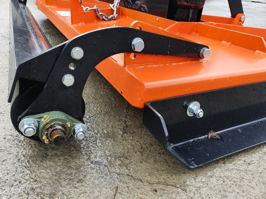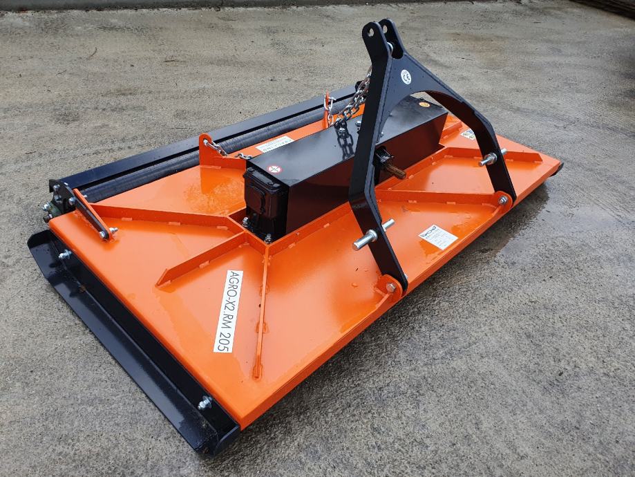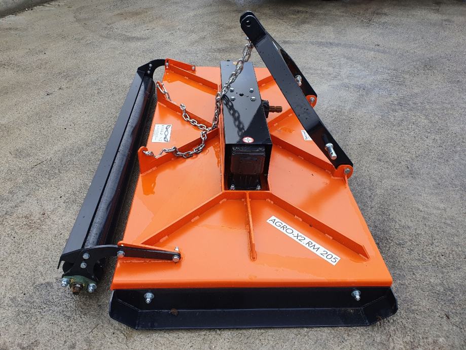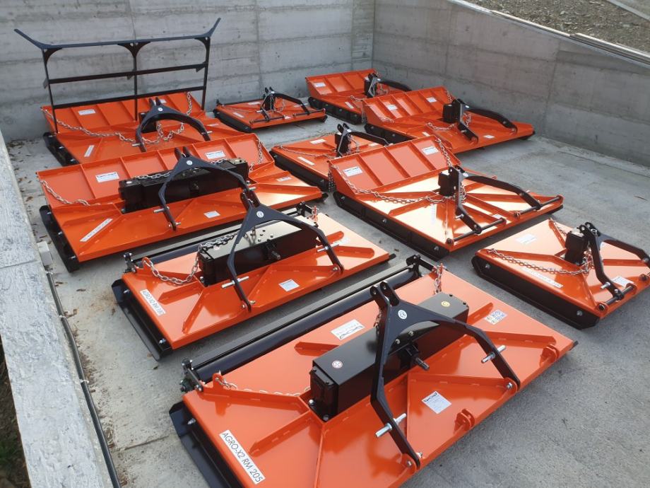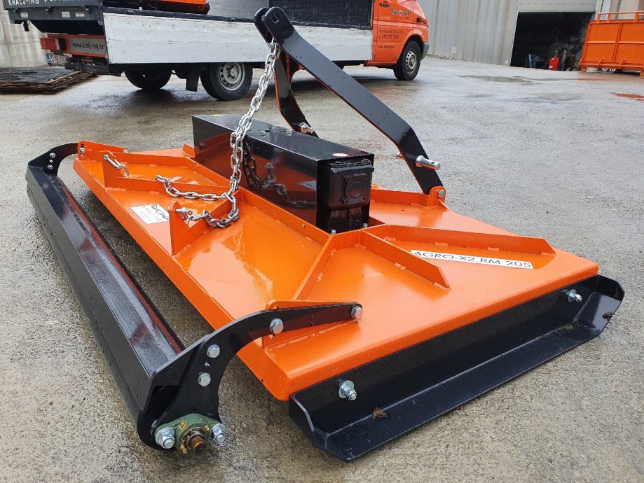 Prodajemo novoizrađene roto malčere širine 205 cm, namijenjene za poljoprivrednu namjenu, tj. za košnju i usitnjavanje trave, grmlja, kukuruzovine, raznih ostataka poljoprivrednih kultura. Bez problema reže drvenastu stabljiku debelu do 3 cm. Svi malčeri su naše proizvodnje (sve osim reduktora), te su kvalitetno i masivno izrađeni. Pogonski dio malčera ostvaren je preko tri reduktora i dva kardana - dva rotora sa po 3 noža ili lanca na svakom. Svi dijelovi na malčeru (čelik, reduktor, kardani, vijci, lanci,) su novi. Svi reduktori su od renomiranih talijanskih proizvođača, te su namijenjeni isključivo za roto malčere, što je vrlo bitno radi povezivanja reduktora u seriju. Sve je dimenzionirano tako da preuzme sve sile koje djeluju na njega , osigurava jednostavnu montažu i demontažu nosača noževa ili lanaca, te osigurava siguran način rada. Bočni reduktori na kojima su rotori omjera su 1:1.92 što znači da broj okretaja na kardanu traktora multiplicira 92%, odnosno ako npr. imate 540 okretaja na traktoru na svakom rotoru traktora će biti 1036 okretaja, što u kombinaciji sa 3 leteća noža ili lanca daje odlične rezultate u radu. Srednji pogonski „T“ reduktor na kojega se priključuje kardan omjera je 1:1. Sva tri reduktora umrežena su sa malim kardanima isključivo za tu namjenu. Nosači noževa ili lanaca su CNC laserskim rezanjem izrezani iz jednog komada čelika (iz jedne ploče) tako da je točnost reza i rupa ispod pola milimetra što je izuzetno bitno za balans noževa te miran i siguran rad. S obzirom da veliki broj malčera koji se prodaju na ovom ili drugim oglasnicima imaju nosač noževa zavaren iz više komada želim Vam skrenuti pažnju na taj detalj. Kada je nosač noževa varen iz više komada njegova geometrija je daleko od savršene, prilikom varenja materijal se jako zagrijava što uzrokuje deformacije u geometriji, unutar materijala dolazi do naprezanja koja mogu ostati "zarobljena" u materijalu te prilikom rada stroja uslijed velikih dinamičkih opterećenja te dužeg vremena korištenja (veliki broj okretaja tj. ponavljanja opterećenja dovesti do "loma" (tkz. zamor materijala). Kao što je i gore navedeno malčer može biti sa noževima ili lancima. Prednost lanaca dolazi na trenima na kojima ima puno kamena (Istra, Dalmacija, Gorski kotar i Lika) te na terenima na kojima je moguć nalet na panja veći kamen ili slično kao i rad u većem grmlju. Kako malčer radi preko dva sinkronizirana rotora puno je bolja opcija sa lancima iz razloga što kod naleta na panj ili slično ne može doći do oštećenja ničega dok kod noževa u takvoj situaciji često dolazi do oštećenja ili noža, nosača noževa, reduktora, kardana. Koda lanaca je to nemoguće jer lanci nisu kruti i kod udara se savinu i amortiziraju udar a čelični bubanj na koji su pričvršćeni lanci je okrugao te nema sa čime udariti ili zacvikati u panj ili slično. Što se tiče rada u travi ili drugom bolji su od noževa. Za lance se koristi visoko otporan lanac klase G80 ili G100 debljine karike 10 mm, nosivosti 3150 kg. Lanci imaju vrlo veliku otpornost na trošenje. U istoj klasi je i spojnica s kojom se lanac pričvršćuje za čelični bubanj. Za izradu svih malčera koriste se sljedeći materijali: konstrukcijski čelik S235 za školjku malčera, noževi, nosač noževa ili lanaca, prihvatni ram se izrađuju od čelika S420, vijci čvrstoće 8.8, dvokomponentna epoksi temeljna i poliuretanska lak boja za metal. Čelična školjka malčera izrađena je od toplo valjanog čeličnog lima debljine 5 mm te je ravnomjerno ojačana čeličnim rebrima 50x10 mm, tako da je vrlo kruta i ne savija se tijekom rada. Debljina lima od 5 mm osigurava neprobojnost prilikom rada ili kod eventualnog pucanja noža. Malčeri na bočnim stranama imaju po cijeloj dužini klizne regulirajuće skije koje osiguravaju uvijek pravilno praćenje neravnina terena kao i to da je malčer uvijek čvrsto sljubljen s tlom pa malč, kamenje i ostalo prilikom rada ne mogu izletiti na bočne strane, što daje dodatnu sigurnost stroja. Sa regulirajućim skijama moguće je podesiti visinu košnje kao i nagib stroja-prednji dio viši radi manjeg otpora kod ulaza trave a stražnji dio niži radi bolje košnje). Malčer zbog velike širine ima i valjak po cijelog dužini. Valjak se može regulirati po visini a vrlo jednostavno i brzo se može demontirati ako se želi raditi bez valjka. Kopčanje malčera moguće je na traktore 1. i 2. kategorije – ugrađeni su originalni klinovi 22-28 mm.