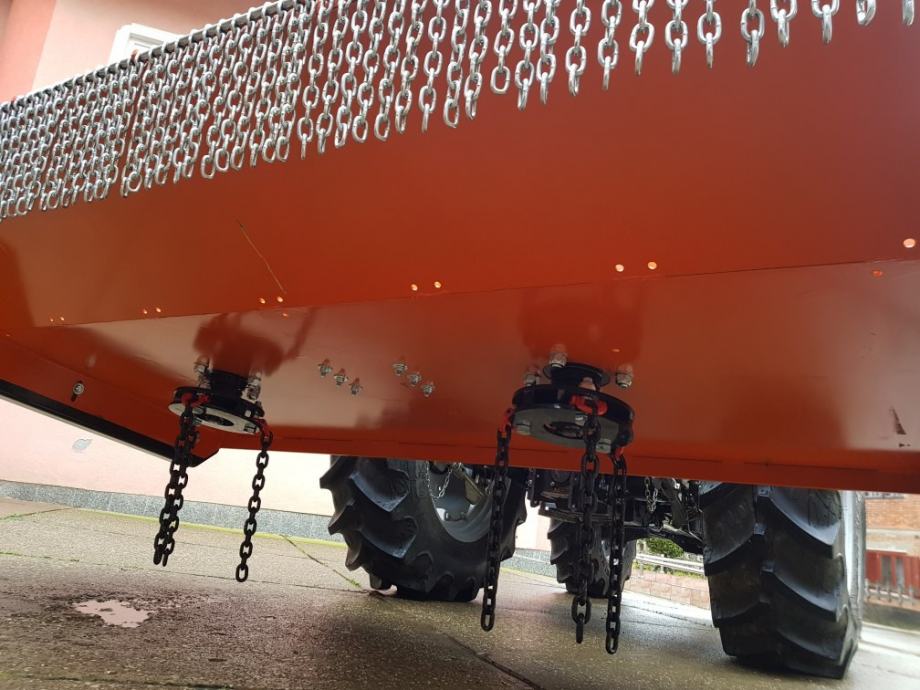 Prodajemo novoizrađene profesionalne roto malčere širine 230 cm, namijenjene za poljoprivredno-šumarsku namjenu, tj. za košnju i usitnjavanje trave, grmlja, šikara, kukuruzovine, raznih ostataka poljoprivrednih kultura. Bez problema reže drvenastu stabljiku debelu do 10 cm. Svi malčeri su naše proizvodnje (sve osim reduktora), te su kvalitetno i masivno izrađeni. Pogonsko-radni dio malčera ostvaren je preko 2 reduktora za teške uvjete rada snage 44 kw i srednjeg "T" reduktora, te vrlo masivnih čeličnih rotora na kojima su pričvršćena 6 visoko otporna lanca debljine karike 10-16 mm. Lanci su klase G80 (3-8 tona nosivosti), vrlo velike žilavosti i otpornosti na habanje. Svi dijelovi na malčeru (čelik, reduktor, vijci, lanci, spojnice lanaca) su novi. Reduktori su od renomiranog talijanskog proizvođača Comer industries, te su konstrukcijski namijenjeni isključivo za roto malčer, sve je dimenzionirano tako da osigurava dugotrajan i siguran način rada, brzu i jednostavnu demontažu rotora (nosača lanaca). Reduktor je omjera 1:1.92 što znači da broj okretaja na kardanu traktora multiplicira 92 %, odnosno ako npr. imate 540 okretaja na traktoru na rotoru će biti 1036 okretaja, što u kombinaciji sa 6 visoko otpornih lanaca daje odlične rezultate u radu. Rotor je CNC laserskim rezanjem izrezan iz jednog komada čelika (iz jedne ploče) tako da je točnost reza i rupa ispod pola milimetra što je izuzetno bitno za balans te miran i siguran rad. Za izradu svih malčera koriste se sljedeći materijali: konstrukcijski čelik S235 za školjku malčera, dok se ostali dijelovi izrađuju od čelika S420, vijci čvrstoće 8.8, dvokomponentna poliuretanska boja za metal. Čelična školjka malčera izrađena je od toplo valjanog čeličnog lima debljine 6 mm, te je ravnomjerno ojačana čeličnim rebrima 60x10 mm, tako da je vrlo kruta i ne savija se tijekom rada. Debljina lima od 6 mm osigurava neprobojnost prilikom rada ili kod eventualnog pucanja lanca. Malčeri na bočnim stranama imaju po cijeloj dužini klizne regulirajuće skije koje osiguravaju uvijek pravilno praćenje neravnina terena kao i to da je malčer uvijek čvrsto sljubljen s tlom pa malč, kamenje i ostalo prilikom rada ne mogu izletit na bočne strane, što daje dodatnu sigurnost stroja. Sa regulirajućim skijama moguće je podesiti visinu košnje. Na stražnjoj strani nalazi se dvodijelna ralica koja služi za guranje, odnosno stiskanje-prevrtanje visokog grmlja, šikara i drveća. Ralica se sastoji od dva dijela, donje niske i gornje visoke ralice koja nije nužna za kupnju. Ovaj stroj karakterizira savršen rad u oba smjera, rad unaprijed preko površina preko kojih je moguće prolaziti traktorom bez oštećenja, te rad unatrag preko površina koje mogu uzrokovati oštećenja ukoliko bi se išlo direktno preko njih. Moguće je i kopčanje na prednju hidrauliku što daje dodatnu učinkovitost ovakvom tipu stroja. Kod rada u velikim šikarama i drobljenu debljeg drveća potrebna je mala brzina rada (pužne brzine).