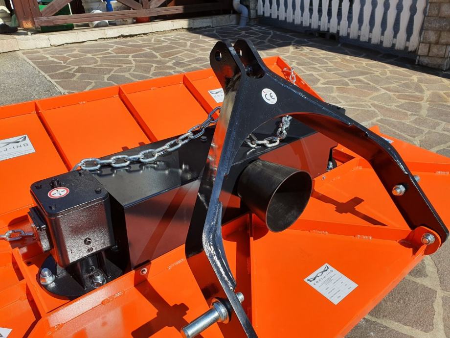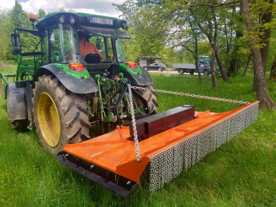 Prodajemo novoizrađene profesionalne roto malčere širine 230 cm, namijenjene za poljoprivredno-šumarsku namjenu, tj. za košnju i usitnjavanje trave, grmlja, šikara, kukuruzovine, raznih ostataka poljoprivrednih kultura. Bez problema reže drvenastu stabljiku debelu do 10 cm. Svi malčeri su naše proizvodnje (sve osim reduktora), te su kvalitetno i masivno izrađeni. Pogonsko-radni dio malčera ostvaren je preko 2 reduktora za teške uvjete rada snage 44 kw i srednjeg "T" reduktora, te vrlo masivnih čeličnih rotora na kojima su pričvršćena 6 visoko otporna lanca debljine karike 10-16 mm. Lanci su klase G80 (3-8 tona nosivosti), vrlo velike žilavosti i otpornosti na habanje. Svi dijelovi na malčeru (čelik, reduktor, vijci, lanci, spojnice lanaca) su novi. Reduktori su od renomiranog talijanskog proizvođača Comer industries, te su konstrukcijski namijenjeni isključivo za roto malčer, sve je dimenzionirano tako da osigurava dugotrajan i siguran način rada, brzu i jednostavnu demontažu rotora (nosača lanaca). Reduktor je omjera 1:1.92 što znači da broj okretaja na kardanu traktora multiplicira 92 %, odnosno ako npr. imate 540 okretaja na traktoru na rotoru će biti 1036 okretaja, što u kombinaciji sa 6 visoko otpornih lanaca daje odlične rezultate u radu. Rotor je CNC laserskim rezanjem izrezan iz jednog komada čelika (iz jedne ploče) tako da je točnost reza i rupa ispod pola milimetra što je izuzetno bitno za balans te miran i siguran rad. Za izradu svih malčera koriste se sljedeći materijali: konstrukcijski čelik S235 za školjku malčera, dok se ostali dijelovi izrađuju od čelika S420, vijci čvrstoće 8.8, dvokomponentna poliuretanska boja za metal. Čelična školjka malčera izrađena je od toplo valjanog čeličnog lima debljine 6 mm, te je ravnomjerno ojačana čeličnim rebrima 60x12 mm, tako da je vrlo kruta i ne savija se tijekom rada. Debljina lima od 6 mm osigurava neprobojnost prilikom rada ili kod eventualnog pucanja lanca. Malčeri na bočnim stranama imaju po cijeloj dužini klizne regulirajuće skije koje osiguravaju uvijek pravilno praćenje neravnina terena kao i to da je malčer uvijek čvrsto sljubljen s tlom pa malč, kamenje i ostalo prilikom rada ne mogu izletiti na bočne strane, što daje dodatnu sigurnost stroja. Sa regulirajućim skijama moguće je podesiti visinu košnje. Na stražnjoj strani nalazi se dvodijelna ralica koja služi za guranje, odnosno stiskanje-prevrtanje visokog grmlja, šikara i drveća. Ralica se sastoji od dva dijela, donje niske i gornje visoke ralice koja nije nužna za kupnju. Ovaj stroj karakterizira savršen rad u oba smjera, rad unaprijed preko površina preko kojih je moguće prolaziti traktorom bez oštećenja, te rad unatrag preko površina koje mogu uzrokovati oštećenja ukoliko bi se išlo direktno preko njih. Moguće je i kopčanje na prednju hidrauliku što daje dodatnu učinkovitost ovakvom tipu stroja. Kod rada u velikim šikarama i drobljenu debljeg drveća potrebna je mala brzina rada (pužne brzine).