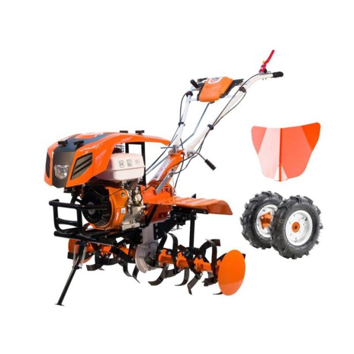 Ruris 915K je idealna kopačica (freza) za gospodarstva koja moraju obrađivati površine iznad 5000 četvornih metara. Opremljena s motorom od 15 KS i noževima za kopanje s podesivom širinom između 750 mm i 1100 mm, RURIS 915K lako može obraditi bilo koju vrstu tla bez obzira na tvrdoću, maksimalne dubine kopanja 30 cm s učinkovitosti preko 1200 m2. / h. Snažni motor i mjenjač 2 + 1 te zupčasti prijenos u uljnoj kupki čine RURIS 915K savršenom frezom koja je u stanju kada se na nju instaliraju transportni gumeni kotači lako vući teret od 1000 kg. Paljenje je manulano sa užetom. Ova snažna kopačica idealna je za prijevoz terete ili za montiranje snježnog pluga naprijed. Pribor koji se može montirati na RURIS 918K su: plug, rovokopač, kultivator, tegljač-prikolica. Sve motokopačice imaju karakteristike prijenosnog sustava, vuče (pogonska osovina) na koju su pričvršćeni vijcima transportni kotači ili alati za kopanje (ovisno o njihovoj uporabi). Sve freze su prvenstveno namijenjene za kopanje uz pomoć noževa koji su pričvršćeni vijcima na jedinstvenu pogonsku osovinu. Prijenos, vuča (pogonska osovina) i sam stroj čine nerazdvojni sklop . Na ovaj stroj ne možete montirati alate kojima se može upravljati podizanjem, spuštanjem, pokretanjem ili pogonom pomoću sile snage kao u slučaju strojeva na kardansko vratilo. Na bilo koju vrstu Rurisovih i DAC motokopačica možete montirati dodatke koji rade isključivo vučom. Sve Rurisove kopačice dolaze bez ulja u motoru i mjenjaču te vam preporučujemo korištenje isključivo originalnih ulja iz bogate palate Rurisovih proizvoda kako bi vašem stroju osigurali najbolju kvalitetu i dugovječnost motora. Snaga: 15 KS