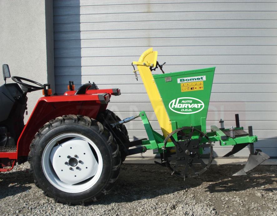 Krumpir se može saditi sa promjenjivim razmakom sjemena u nizu (29 cm, 32 cm i 35 cm) I to podešavanjem metalnih kotača.