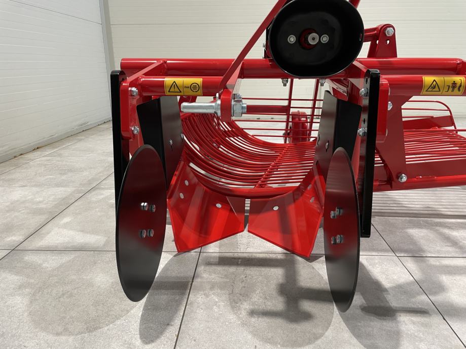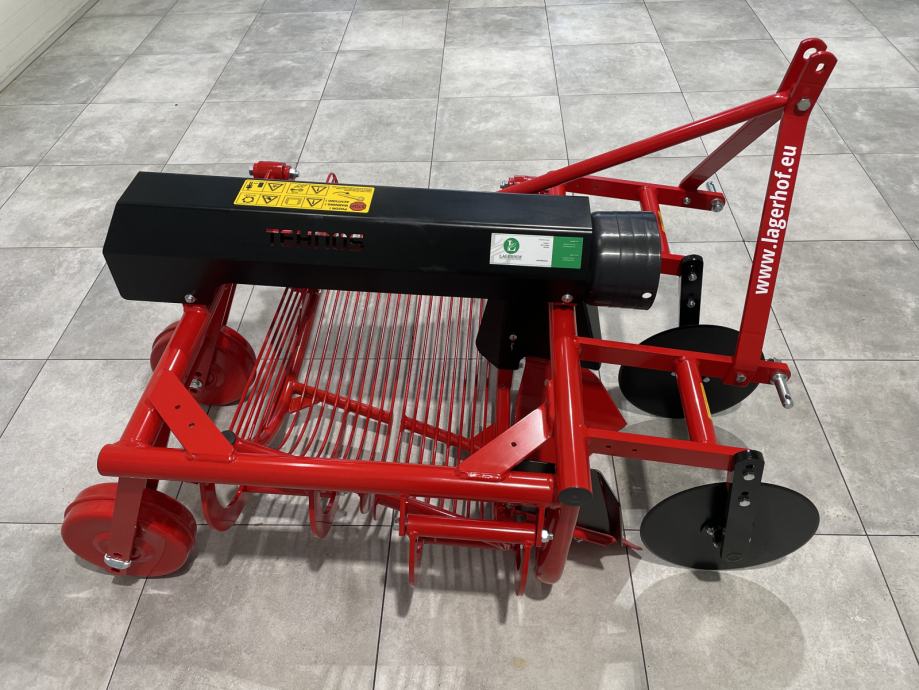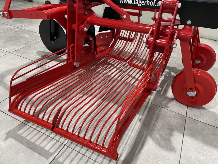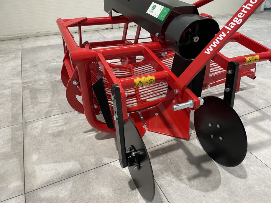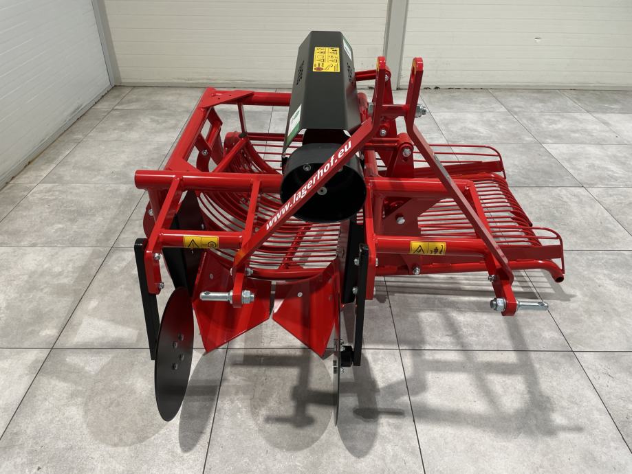 Vadilica krumpira- Broj redova: 1- Produktivnost: 0,25 ha/h- Radna brzina: 3 km/h- Broj okretaja 540 min-1- Otvorenost plužnih glava 45 cm- Dimenzije stroja: 150 x 170 x 110 (cm)- Snaga traktora: 22 - 40 kW (30 - 55 KS)- Težina stroja: 234 kg- Dva diska smanje višak krumpirove cime- Plužna glava odreže red sa krumpirom i usmjeri ga na rešetke- Na dvije protusmjerno gibajuće rešetke, čiju brzinu gibanja prilagodimo, zemlja se prosije- Očišćen krumpir se smjesti u red na rubu stroja.CIJENA: 1.472 € + PDV = 1.840 €Mogućnost kupnje kardana:- Walterscheid W2200: 191 € + PDV = 239 €- Cerjak C-Line 04: 160 € + PDV = 200 €Garancija, servis i rezervni dijelovi.MOGUĆNOST DOSTAVEwww.lagerhof.eu/hr