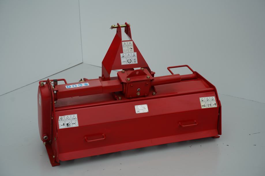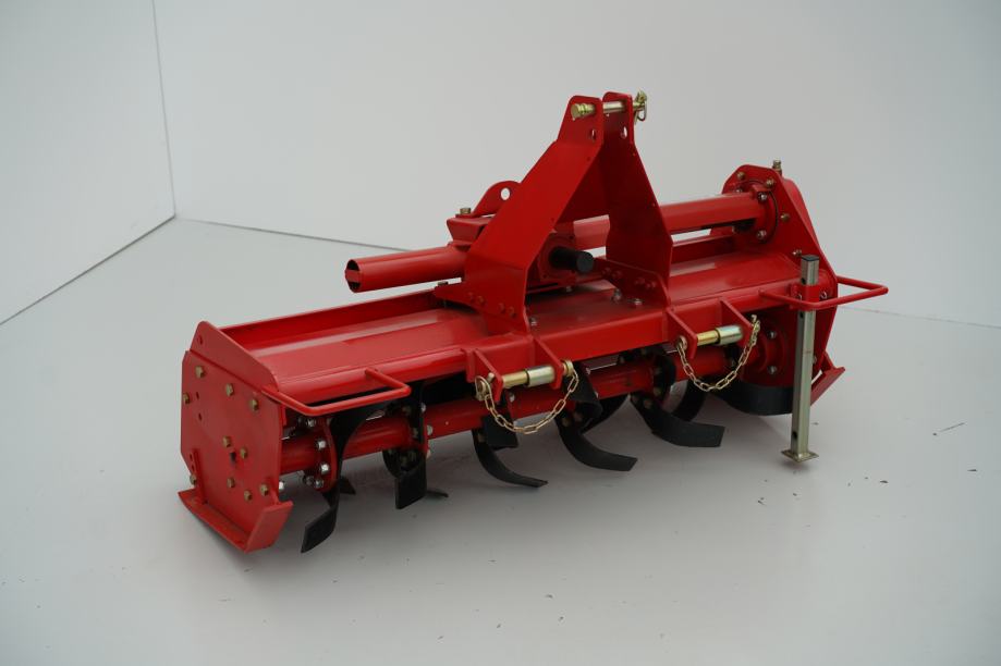 Opremljena je s 24 noža koji ravnomjerno obrađuju zemlju po cijeloj širini, pri čemu postižu radnu dubinu između 10 i 15 cm. Takav raspon omogućuje prilagodbu različitim tipovima tla i zahtjevima obrade, od plitke pripreme površine do dubljeg rahljenja. Mehanički pomak lijevo i desno omogućuje precizniji rad uz rubove, ograde, stabla ili nasade, gdje je potrebna veća kontrola nad radnom linijom.