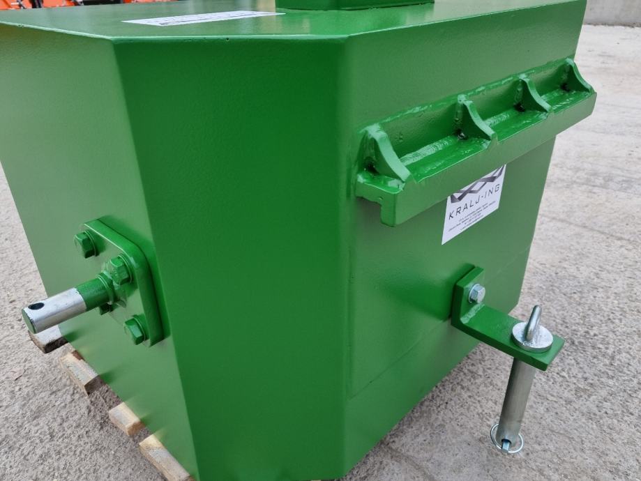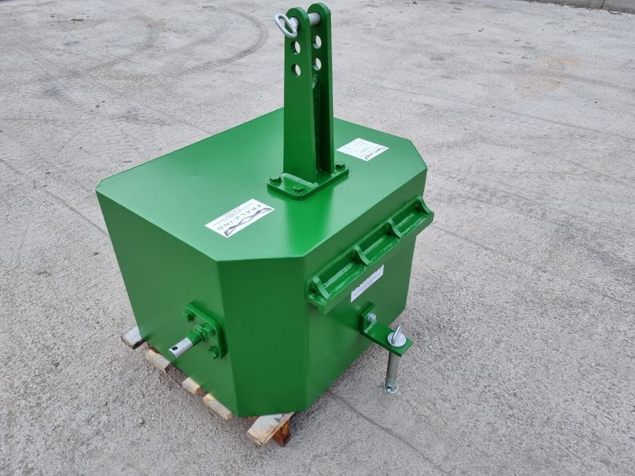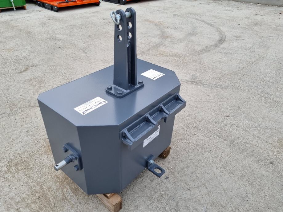 Prodaju se novoizrađeni utezi za traktor, za prednju i stražnju hidrauliku. Utezi su napravljeni od čelicne oplate punjenje betonom. Beton je kompletno zatvoren u čeliku ( nigdje nije vidljiv beton). Priključak poteznice, priključni bolcini i vuča su izvedeni demontažno ( vijčani spoj), te su svi ti dijelovi međusobno povezani unutar betona poboljšanim čelikom (šipke promjera 30 mm) kako bi se opterećenje prenosilo direktno čelikom na oslonce a ne preko betona. Utezi su antikorozivno zastičeni DTM poliuretanskom bojom u dva sloja. Moguća izrada kilaže po želji od 100-2500 kg, isto tako moguća izrada/prilagodba priključaka/oslonaca po želji (utezi spojeni direktno na šasiju traktora).
