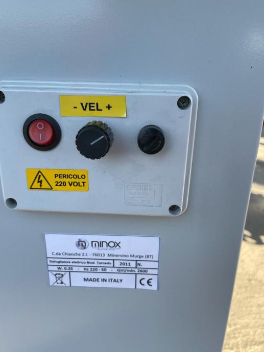 Opremljen je zaštitnom rešetkom za sakupljanje lišća, ventilatorom, električnim varijatorom brzine i kotačima za lakšu manipulaciju i premještanje.