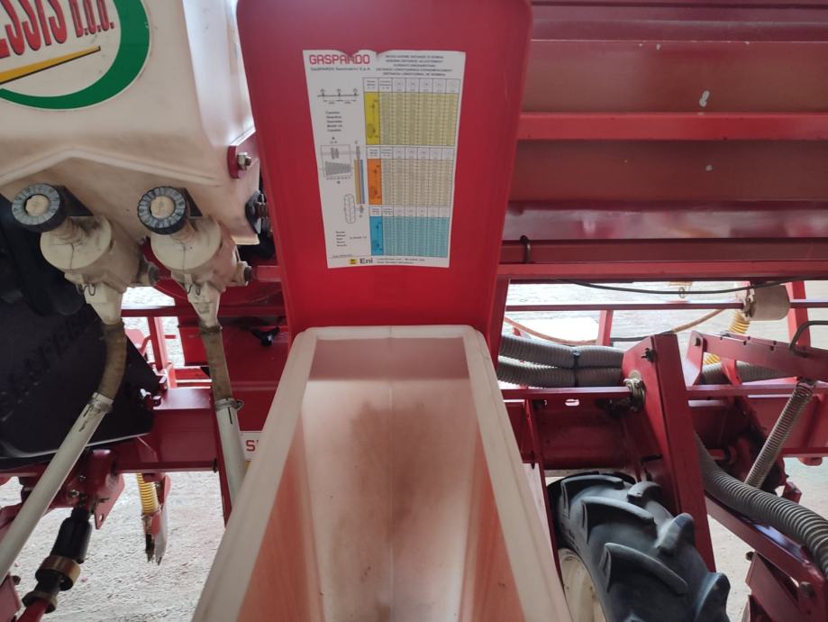 Prodajem Gaspardo sijačicu kukuruza na 6 redova. Sijačica ima šest zasebnih sekcija, svaka s vlastitim spremnikom za sjeme, što omogućuje preciznu i ravnomjernu sjetvu. Stroj je opremljen odgovarajućim kotačima za vođenje i pritisne ploče za kvalitetan kontakt sjemena s tlom. Priključak je standardni, pogodan za traktore odgovarajuće snage. Sijačica ima automatsko prebacivanje markera, te dozatori za gnojivo i mikrogranule (otrove).