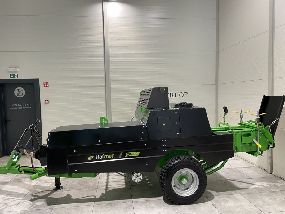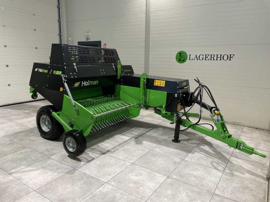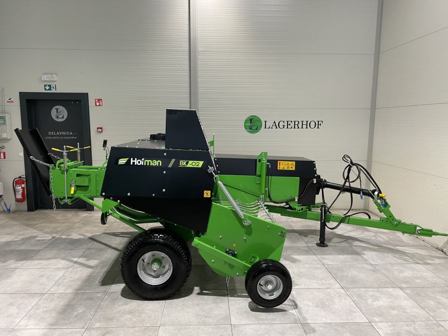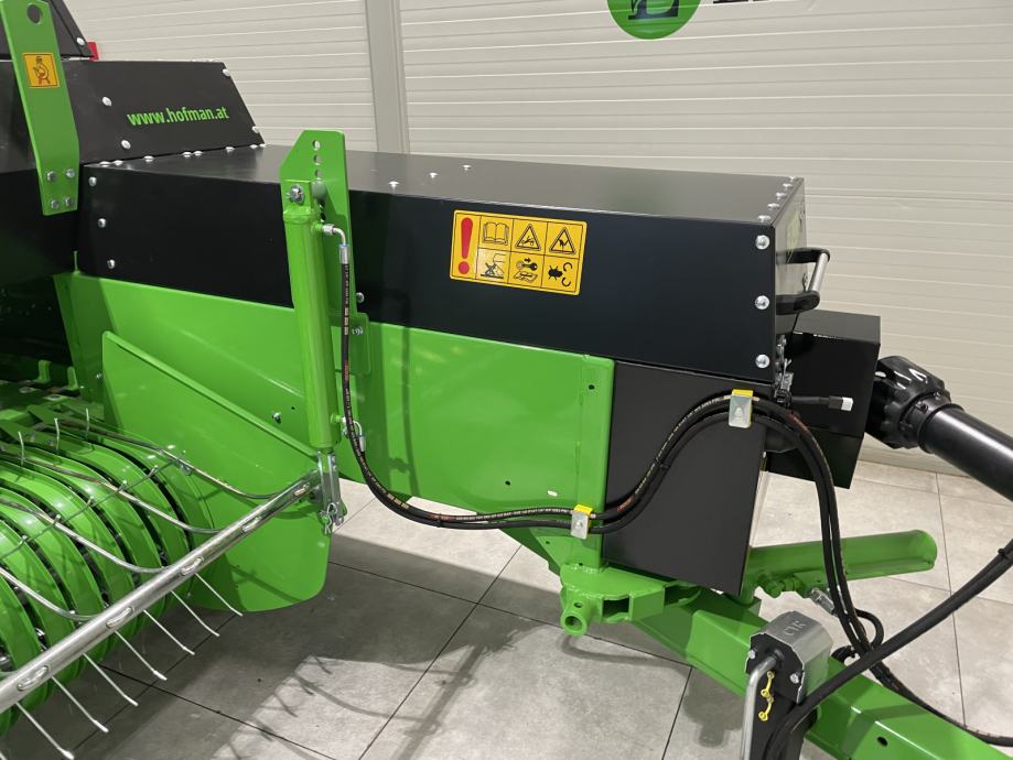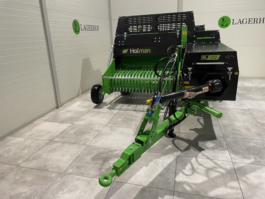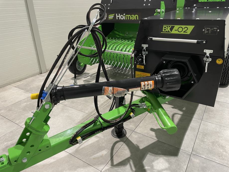 Balirka za kockaste bale Hofman BK-02- Težina: 1.720 kg- Visina: 1,90 m- Širina: 2,65 m- Radna dužina: 5,83 m- Transportna dužina: 4,85 m- Širina uvlačnog sistema : 155 cm- Hidraulički podizanje uvlačnog sistema- Veličina bale: 36 x 46 cm- Podesiva duljina bale: 40 - 130 cm- Težina bale: 12-26 kg- Vezivanje špagom - sustav vezivanja s 2 špage- Prostor u balirki za 6 špaga- Minimalna potrebna snaga traktora: 45 KS- Broj okretaja kardana: 540 o/min- Lijevi kotač: 10/75 R15.3- Desni kotač: 10/80 R12- Produktivnost: 1.500 - 2.200 bala / dan- Brojač bala- Hidraulički pomak rudeCIJENA: 12.696 € + PDV = 15.870 €Moguća DOSTAVAwww.hofman.at