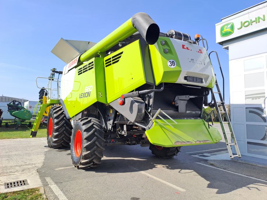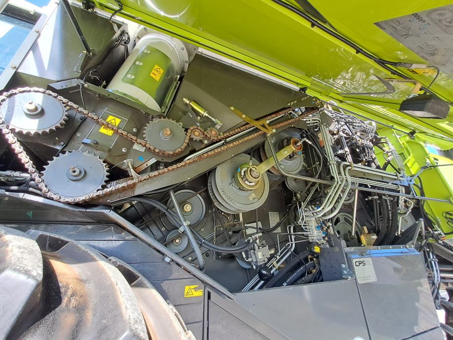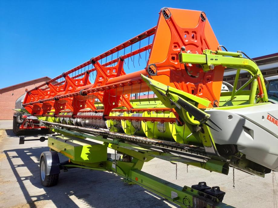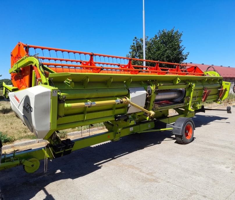Heder Claas V770, varijabilni heder radnog zahvata 7,70 m, pogon sa jedne strane, izvlačivi stol za repicu do 700 mm (podesivi razmak između kose i pužnice 490 - 1135 mm), dvije bočne kose, podizači poležine.