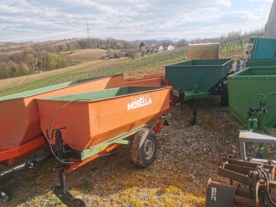PRIKOLICE za transport grozdja, velikosti od 1600 do 5000 litrov, znamke CHEMO, MOSSELA, MÖRTL, BEINLICH, RAUCH, KNOD, obnovljene, pripravljene na sezono, prodam, možna dostava. Cijena od 1300€