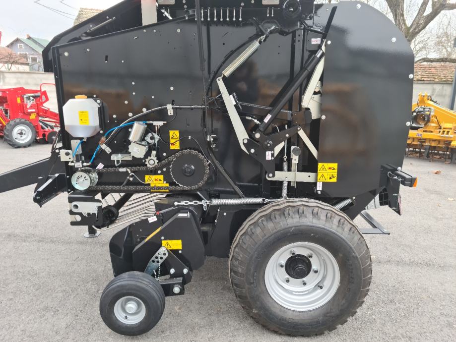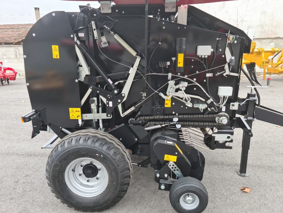 Rolo presa sa fiksnom komorom za okrugle bale, sa sustavom prešanja sa šipkama i lancima, koji se koristi za traktore male snage.