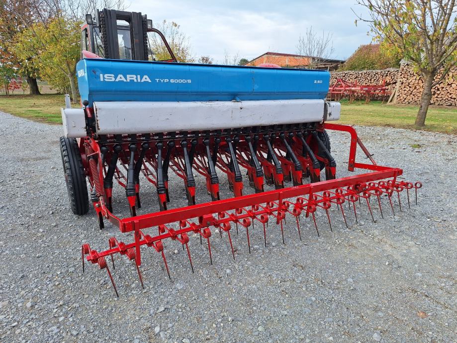 Sijačica za žito Isaria 6000/S 2.5 metra,21 red,uljna getriba,centralno podešavanje dubine sjetve,automatsko zatvaranje redova,automatsko prebacivanje markira,poništivači tragova traktora,pokazivač količine sjemena u spremniku,dodatni sitni zupci za sjetvu sitnih sjemena,knjiga sa uputama,poluga za vaganje.