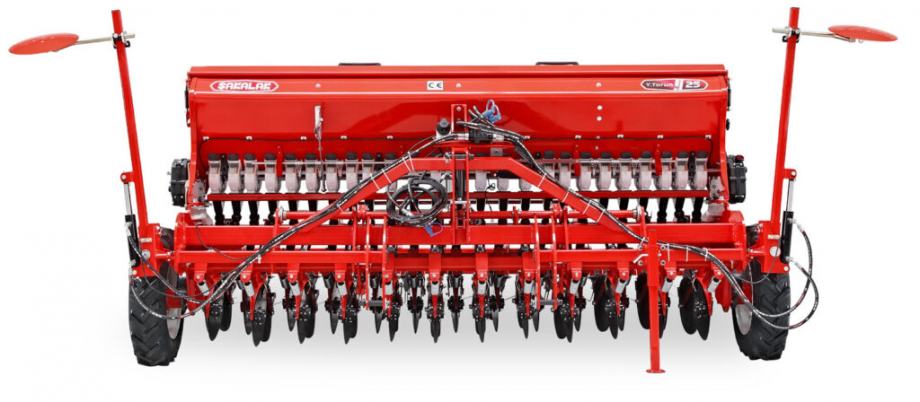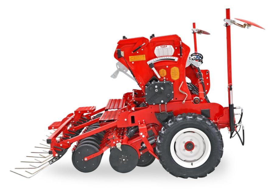 Ovakva mašina PRELAZI sve vrste prepreka koje vas mogu zadesiti u njivi prie svega zbog najnovijeg sistema diskosnih ulagaca sjemena koji je gotovo identican sistem funkcioniranja viđen kod pneumatskih sijačica zapadnih marki. Dubina na koju se ulaže sjeme može se podesiti iz kabine, dok su kutije koje osiguravaju „ispucavanje“ sjemena prilagodjive za sve vrste sjemena: pšenicu, djetelinu, uljanu repicu, soju… Podešavanje sijačice se može izvesti i prie nego što se pusti u rad . U standardnoj opremi dobijate i hidraulicne markere, kao i češalj koji pomaže zatvaranju zemlje, dok su nagazni tockovi dodatna oprema koju preporucujemo jer imaju funckiju kembriđ valjka, te se na ovaj nacin dobijaju dvije operacije u jednom prohodu.