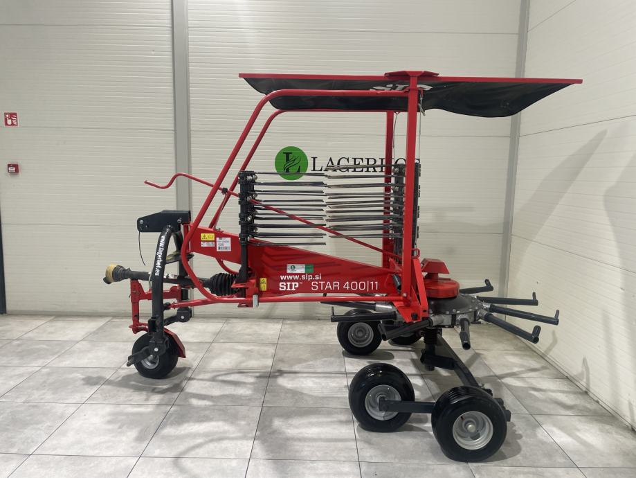 Skupljač sijena / trave SIP STAR 400/11 - rabljeni-Godina proizvodnje: 2015.- Radna širina: 4,00 m- Širina reda: 0,70 - 1,40 m- Broj nosača prsti na rotoru: 11- Broj opružnih prsti na ruci: 4- Promjer rotora: 3,15 m- Okretaji kardanskog vratila: 540 o/min- Preporučeno broj okretaja priključnog vratila: 350 - 450 o/min- Težina: 550 kg- Potrebna snaga traktora: 22/30 kW / KS- Kapacitet: 5,00 ha / h- Sigurnosna spojka: 600 Nm- Širina stroja: 3,51 m- Transportna širina: 1,99 m- Visina stroja: 1,50 m- Transportna dužina: 3,70 m- Gume: 16x6,50 - 8- Modularni rotor- Udoban rad- Priključak u tri točke: II KAT- Fleksibilan priključak sa stabilizatorima- Podesiva krivulja- Podešavanje nagiba rotora- Klizna sigurnosna i prostotečna spojka- Zavjesa- Mehaničko podešavanje radne visine- Opružne ruke podesive po visini- SIP Koračni tandem (SIP patent)Potporni kotačCIJENA: 4.901,60 € + PDV = 6.127 € s PDV-om. 1 GODINA GARANCIJE!KARDAN UKLJUČEN U CIJENUMOGUĆNOST DOSTAVEwww.lagerhof.eu