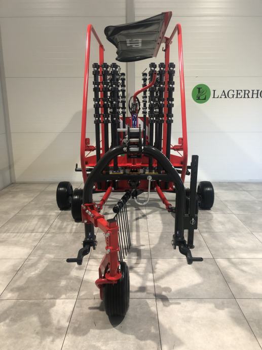 Sakupljač sijena / trave SIP STAR 470/13- Radna širina: 4,70 m- Širina reda: 0,60 - 1,40 m- Broj nosača prsti na rotoru: 13- Broj opružnih prsti na ruci: 4- Promjer rotora: 3,56 m- Okretaji kardanskog vratila: 540 o/min- Preporučeno broj okretaja priključnog vratila: 350 - 450 o/min- Težina: 575 kg- Potrebna snaga traktora: 30/40 kW / KS- Kapacitet: 6,20 ha / h- Sigurnosna spojka: 600 Nm- Širina stroja: 3,72 m- Transportna širina: 2,20 m- Visina stroja: 1,60 m- Transportna dužina: 4,02 m- Gume: 16x6,50 - 8- Modularni rotor- Udoban rad- Priključak u tri točke: II KAT- Fleksibilan priključak sa stabilizatorima- Podesiva krivulja- Podešavanje nagiba rotora- Klizna sigurnosna i prostotečna spojka- Zavjesa- Mehaničko podešavanje radne visine- Opružne ruke podesive po visini- SIP Koračni tandem (SIP patent)CIJENA OSNOVNOG MODELA: 65.000 kn sa PDV-om.DODATNA OPREMA MODDELA NA SLIKAMA:Potporni kotačCIJENA MODELA NA SLIKAMA: 66.700 kn sa PDV-om.MOGUĆNOST DODATNE OPREME:- Oprema za sigurnost na cestama- SvijetlaKARDAN UKLJUČEN U CIJENUGarancija, servis i rezervni dijelovi.Mogućnost naručivanja SVIH traktorskih priključaka SIP sa širokim izborom dodatne opreme po ODLIČNIM CIJENAMA.MOGUĆNOST DOSTAVEwww.lagerhof.eu/hr