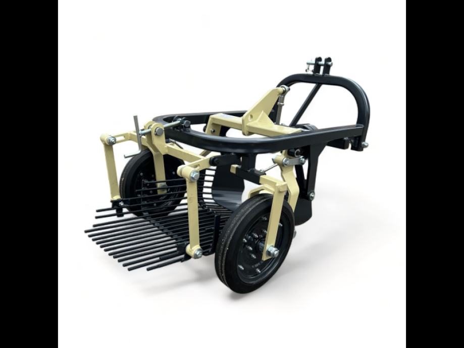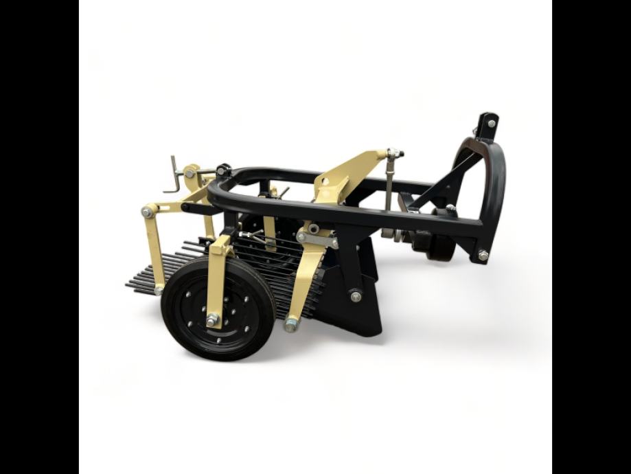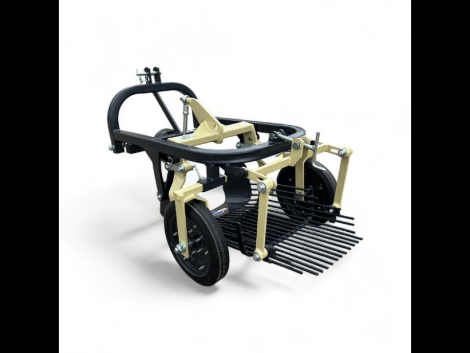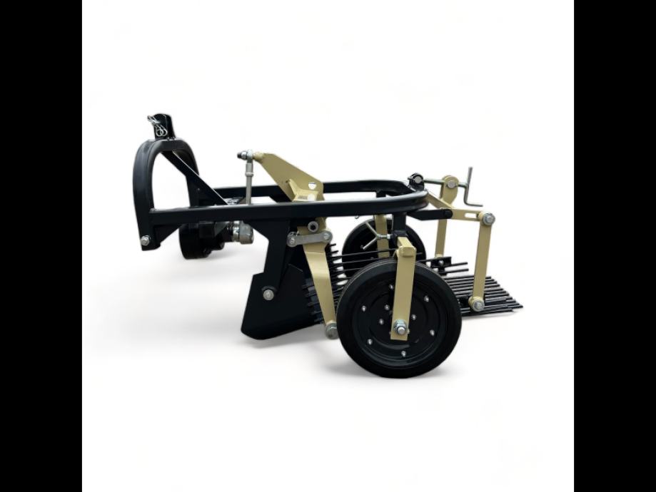 Lagana jednobrazdna vibracijska vadilica za krumpir, jednostavnog dizajna koja je prikladna za male traktore.Vadilica se pričvršćuje na stražnji dio traktora pomoću sustava spojke u tri točke, pogonjen brzinom od 540 o/min iz kardana. Ekscentrična osovina prenosi glatke pokrete na rešetku ispod, koja savršeno trese krumpire. Ova vadilica za krumpir namijenjena je kopanju jedne brazde, širina kotača je podesiva, tako da je lako možete prilagoditi svom krumpirištu.
