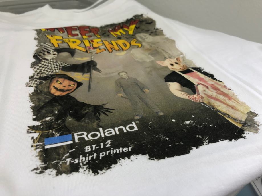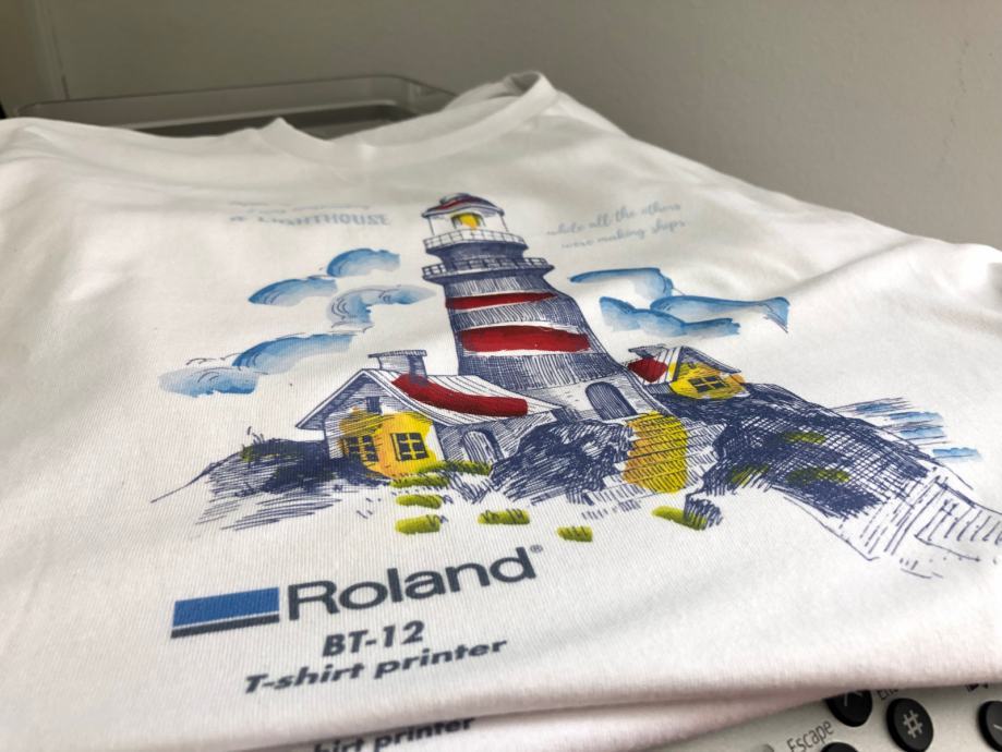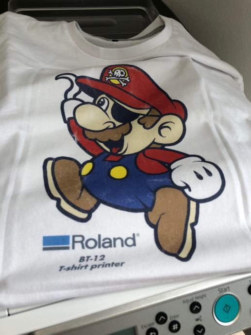Roland VersaStudio BT-12 printer za majice. Vrlo jednostavna priča sa tiskom na majice predstavljena je prošle godine na sajmu Sign Expo i FESPA Berlin pod imenom Roland VersaStudio BT-12. Roland VersaStudio BT-12 je nova generacija malog desktop DTG printera za majice i razne druge tekstilne materijale. Ovaj printer koristi isključivo CMYK sistem za tisak na tekstil i u sebi nema bijelu boju kao opciju koja se koristi kod apliciranja na tamne majice. Roland BT-12 DTG printer je vrlo jednostavna opcija malog desktop printera koji može otisnuti dizajn u A4 i A5 formatu, a svoju primjenu pronašao je najčešće za tisak malih personaliziranih naklada tipa fotografija ili poklona.