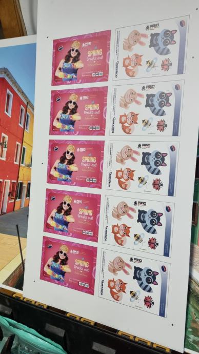 Roland UV tinta: CMYK + WH (bijela) + GL (lak/sjaj).