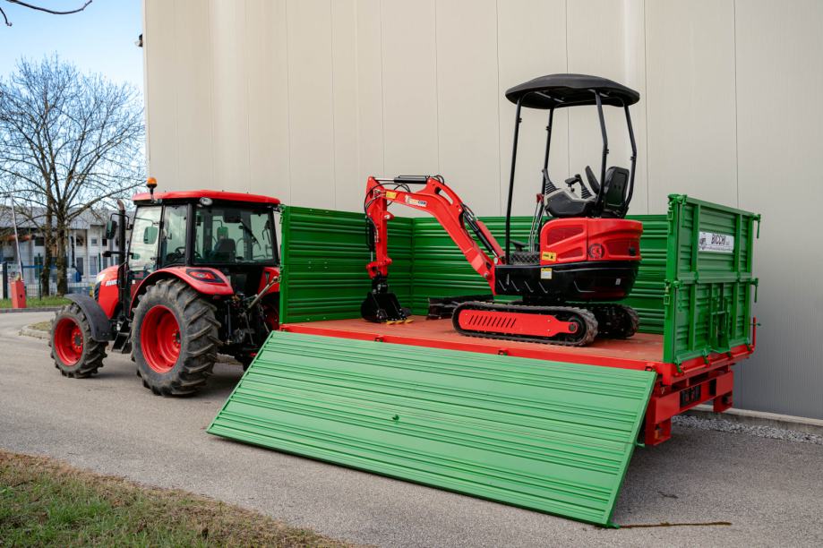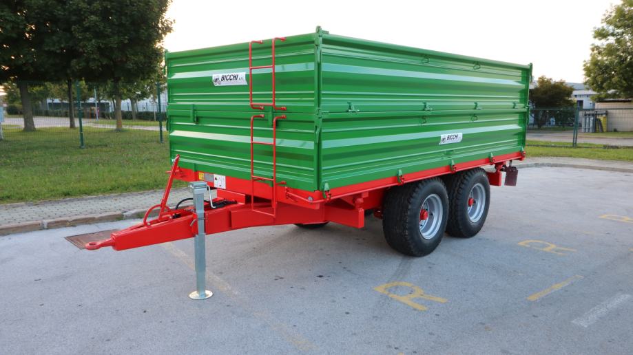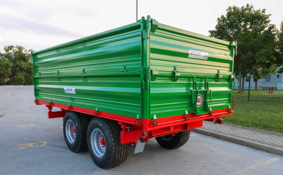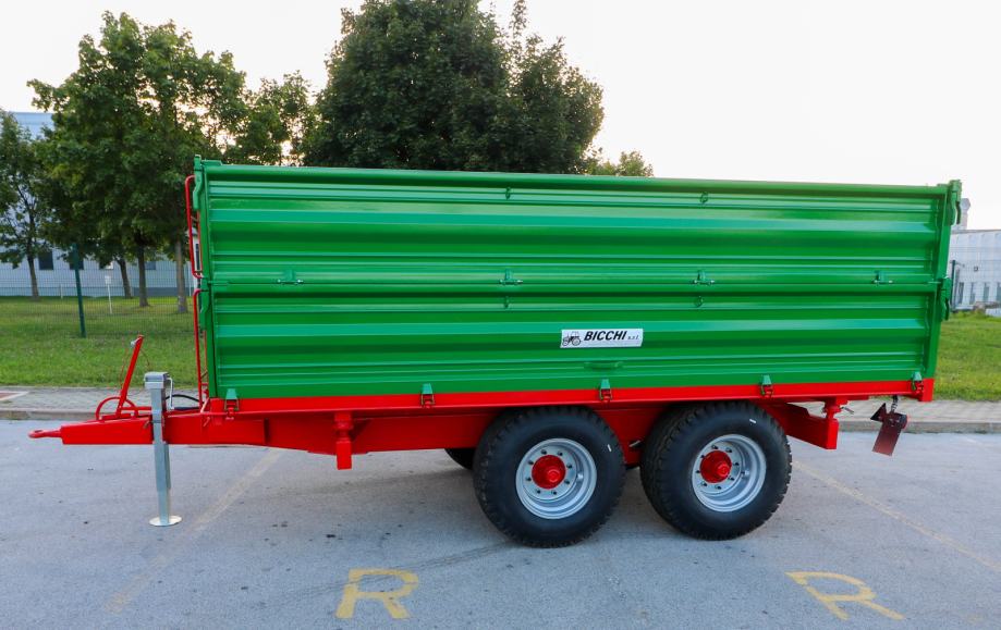 Poljoprivredna tandem prikolica Bicchi PKT 12 t visoko je učinkovit traktorski priključak namijenjen zahtjevnim transportnim zadacima u poljoprivredi, šumarstvu i građevinarstvu. S ukupnom nosivošću od dvanaest tona omogućuje prijevoz velikih količina materijala kao što su zemlja, kamenje, pijesak, drvo ili veća građevinska oprema. Zahvaljujući tandem podvozju prikolica pruža izvrsnu stabilnost i sigurnost pri radu, čak i na neravnim ili strmijim terenima. Konstrukcija je robusna i izrađena za dug vijek trajanja te intenzivnu upotrebu, što znači manje održavanja i više pouzdanog rada.