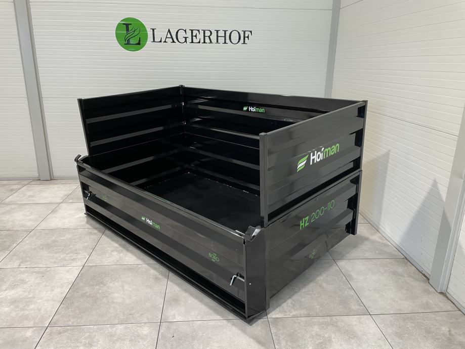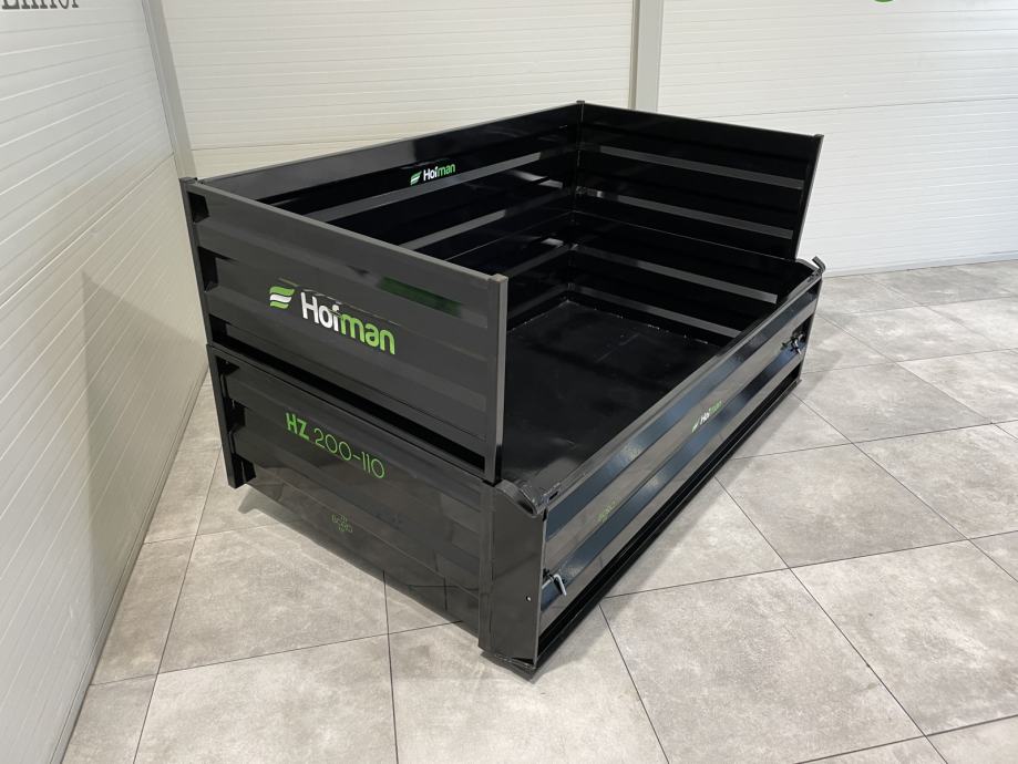Traktorski plato Hofman BORO HZ-200/110 - dimenzije: 200 x 110 cm - visina stranica: 50 cm - nosivost: 1500 kg - težina: 295 kg - robustan dizajn - dvosmjerni cilindar - stražnja otvarajuća vrata - utor za paletne vilice - povišenje stranica (uključeno u cijenu) CIJENA: 1.699 € s PDV-om. Moguća DOSTAVA www.lagerhof.eu
