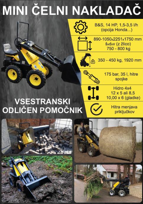 Mini utovarivač nakladač GOLJAT TUR vsestranski pomočnik dvig 400 kg