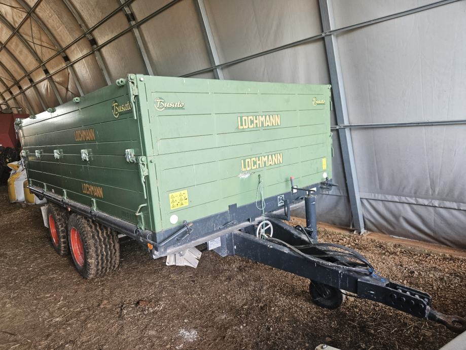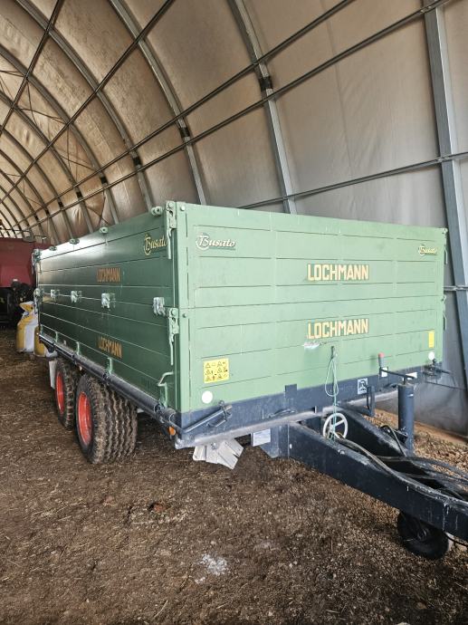 Prodajem poljoprivrednu prikolicu Lochmann nosivosti 10 tona, model RM9 10T. Prikolica je opremljena dvostrukom osovinom s pneumatskim gumama i hidrauličkim kočnicama. Sanduk je izveden u zelenoj boji s mogućnošću istovarivanja na tri strane.zadnja zakretna osovina,aluminjske stranice. Čvrsta konstrukcija s ojačanim stranicama osigurava pouzdanost pri transportu raznih tereta u poljoprivrednoj proizvodnji.