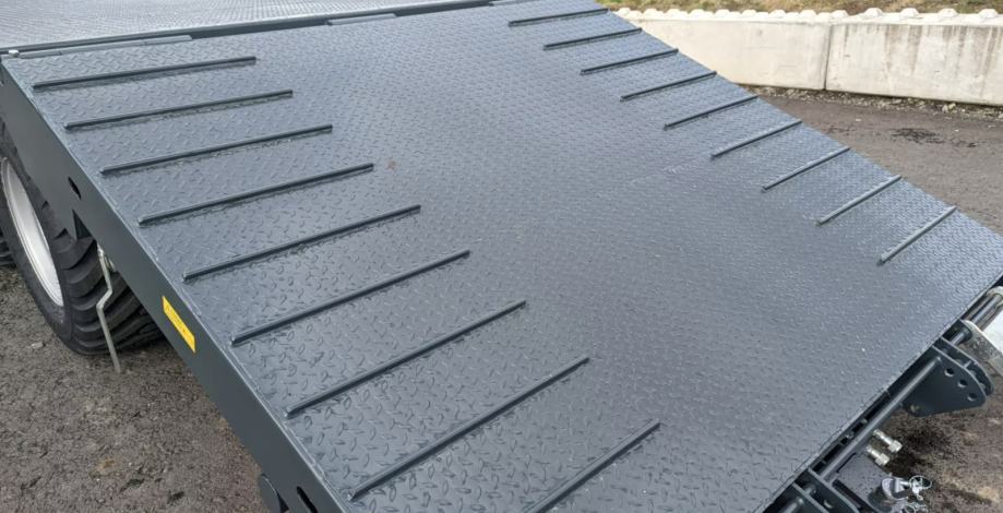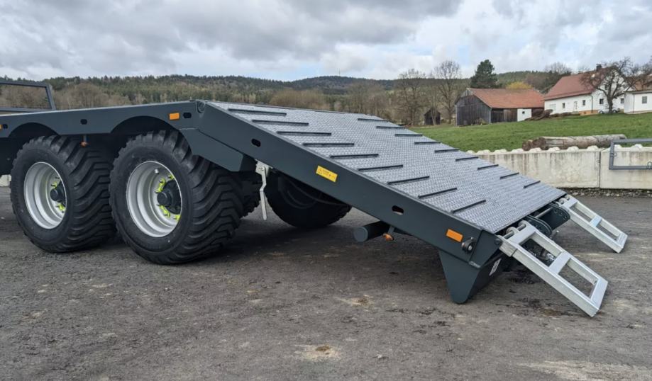 Za utovar najprije hidraulički spustite stražnju rampu na tlo, odvezite stroj gore, podignite rampu u prvobitni položaj – gotovo.Ovaj model je razvijen uzimajući u obzir potrebe kupaca koji su izrazili želju kombinirati prijevoz bala, kao bageri i drugi strojevi.