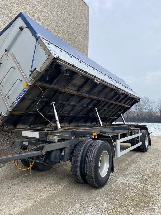 Prikolica dvostrani uljni kiper, jastučarka, disk kočnice, dimenzije sanduka 7.6 x 2.5 x 1.6 m, sanduk 2020 godina, cerada na zračno otvaranje, mogućnost prenamijene na traktorsko priključno vozilo, odlično stanje, cijena 15200 eur. Može se vidjeti u selu Jamarice pokraj Kutine, dodatne informacije možete dobiti na telefon 0997015650 ili WhatsApp, Viber
