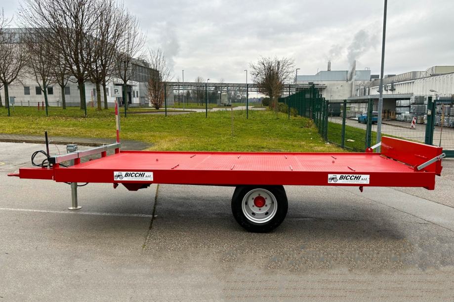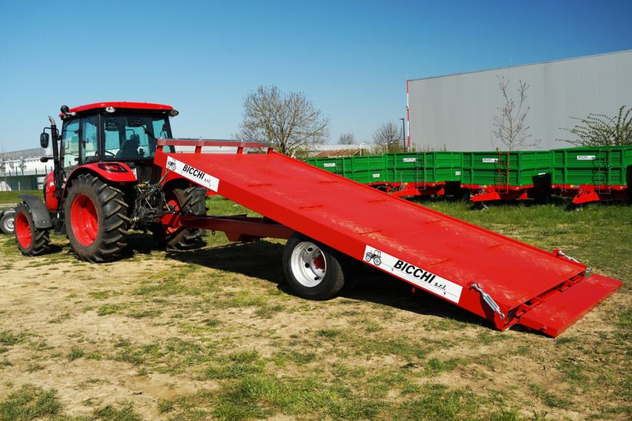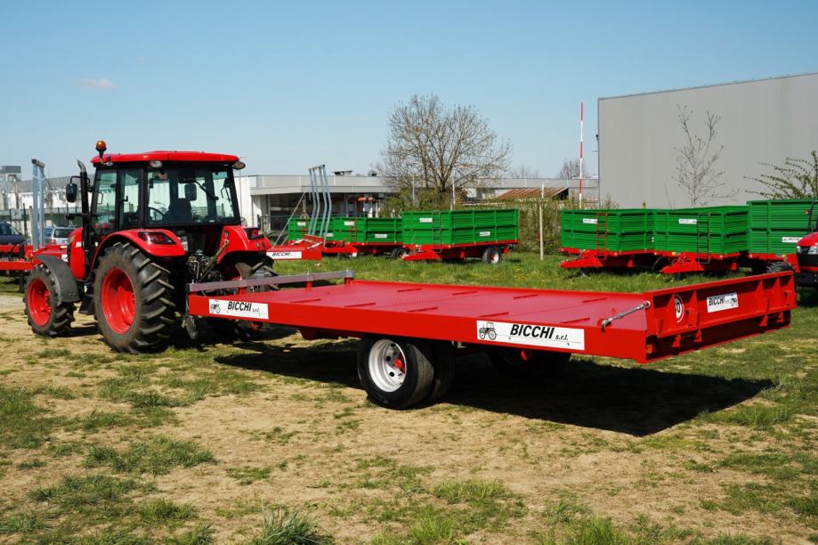 Plato prikolica Bicchi PPE 8.5 T kvalitetan je jednoosni traktorski priključak namijenjen prijevozu većih količina tereta u poljoprivredi ili građevinarstvu. S nosivošću od približno osam i pol tona omogućuje prijevoz građevinskog materijala, strojeva, paletnog tereta ili poljoprivrednih proizvoda uz minimalan broj vožnji. Duljina i širina platforme prilagođene su tako da nude dovoljno prostora za utovar strojeva ili većih komada opreme, što olakšava rad i povećava učinkovitost.